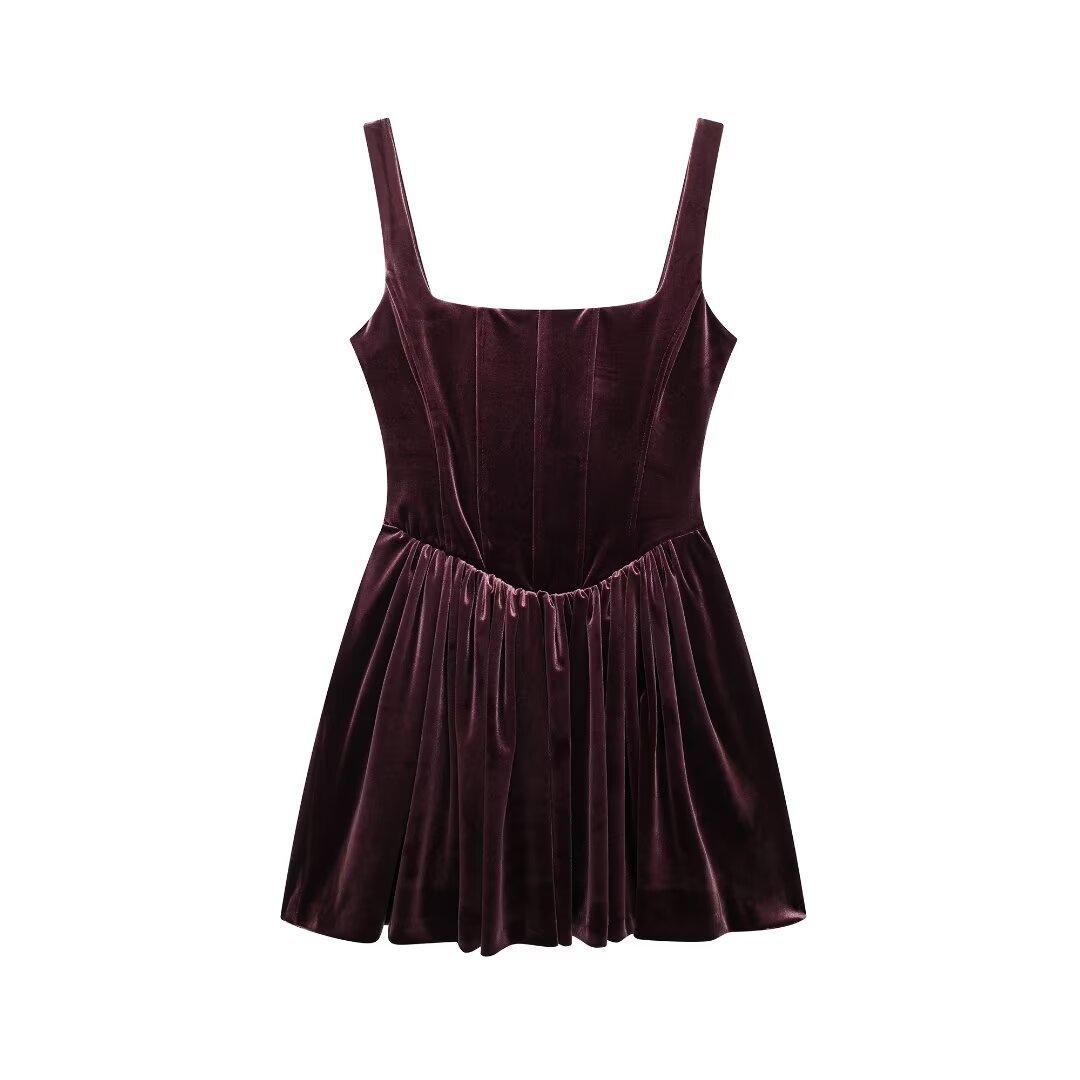 Compre Comércio exterior de roupas femininas atacado 24 estilo europeu e americano novo veludo espartilho vestido curto saia francesa com suspensórios no atacado no Joom.pro