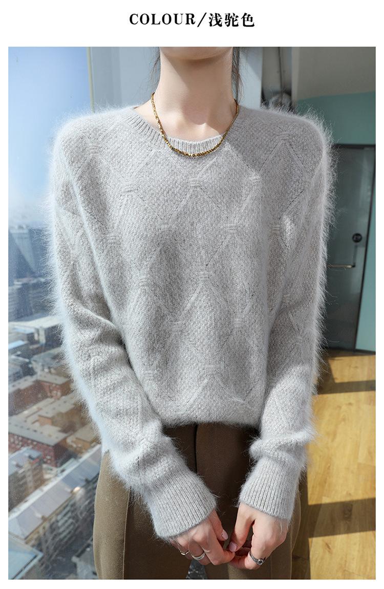 Suéter de visón con cuello redondo para mujer, jersey holgado de color sólido con base de punto de diamante, suéter grueso de lana, otoño e invierno, 2024