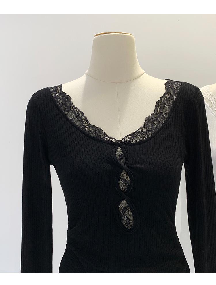 Compra Camiseta de Fondo Interior con Escote en V, Encaje Empalmado y Aberturas, Trbottomy para Mujer 2025 Otoño e Invierno, Diseño Sexy, Top de Manga Larga al por mayor en Joom.pro