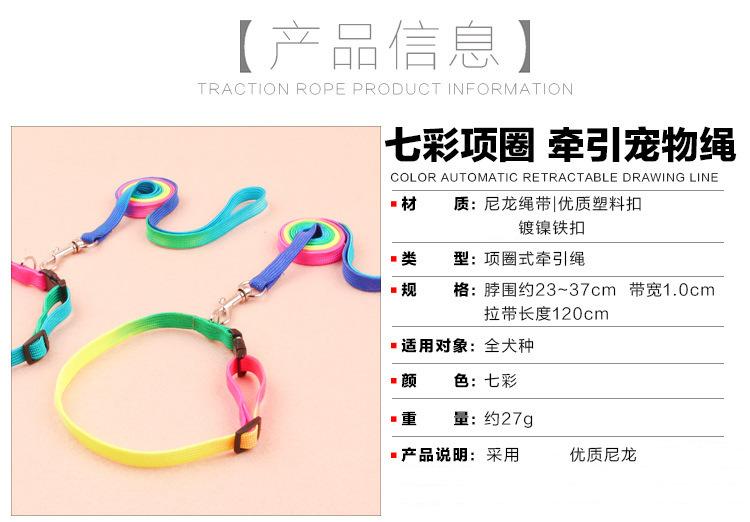 6. Coleira de corda redonda colorida com coleira: largura da corda 1,0 cm comprimento 120 cm largura da coleira 1,5 cm circunferência do peito ajustável 38-42 cm