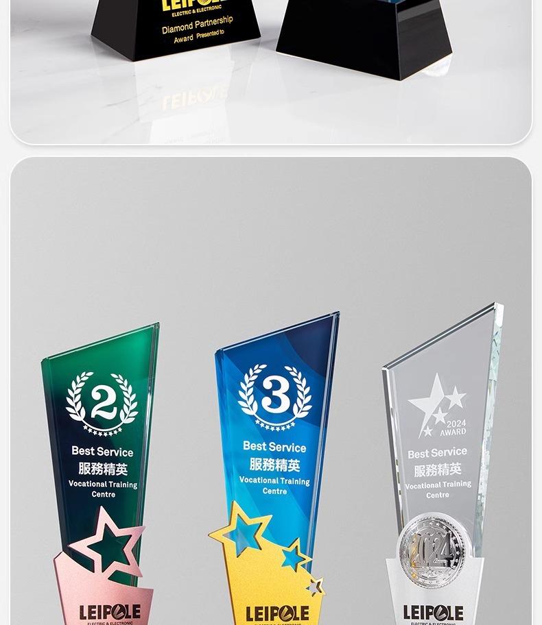 Troféu de Cristal de Metal de Alta Qualidade Personalizado Prêmios de Honra de Reunião Anual Medalha de Equipe Funcionário Destaque Produção de Lembrancinhas