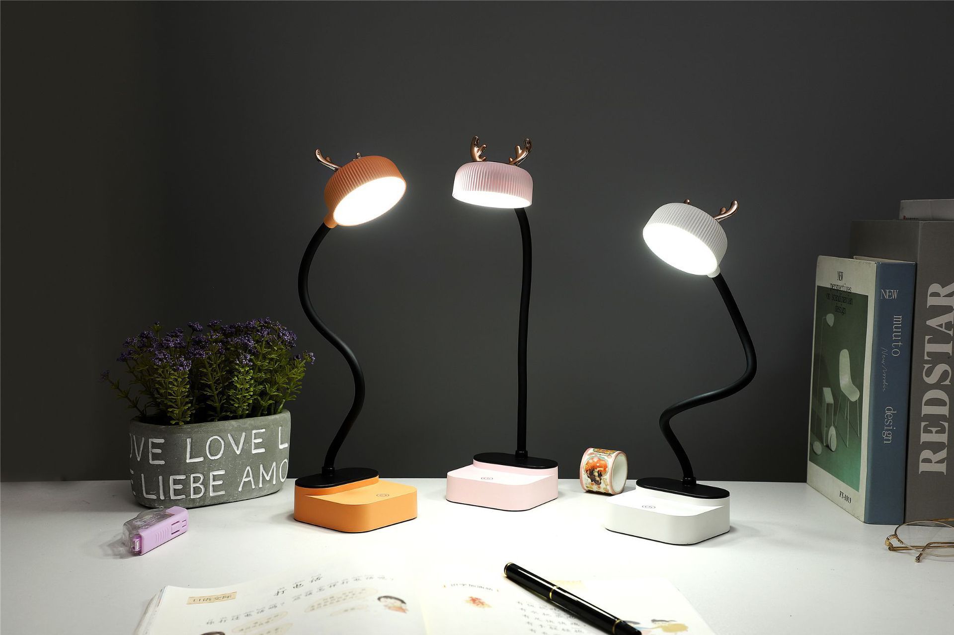 【Nome do produto】Lâmpada de mesa com toque de chifre simples