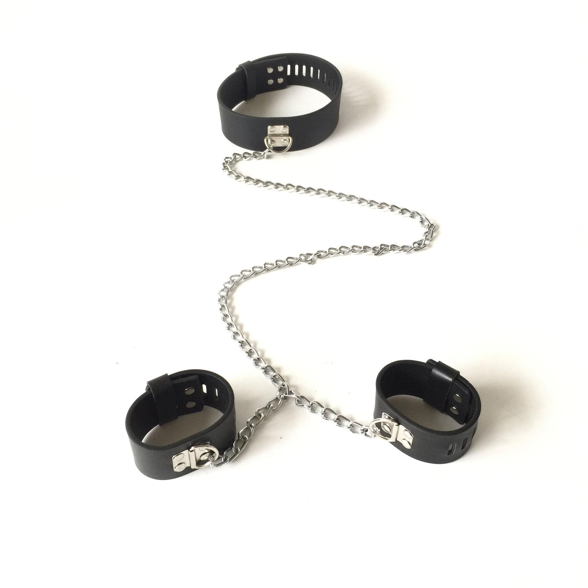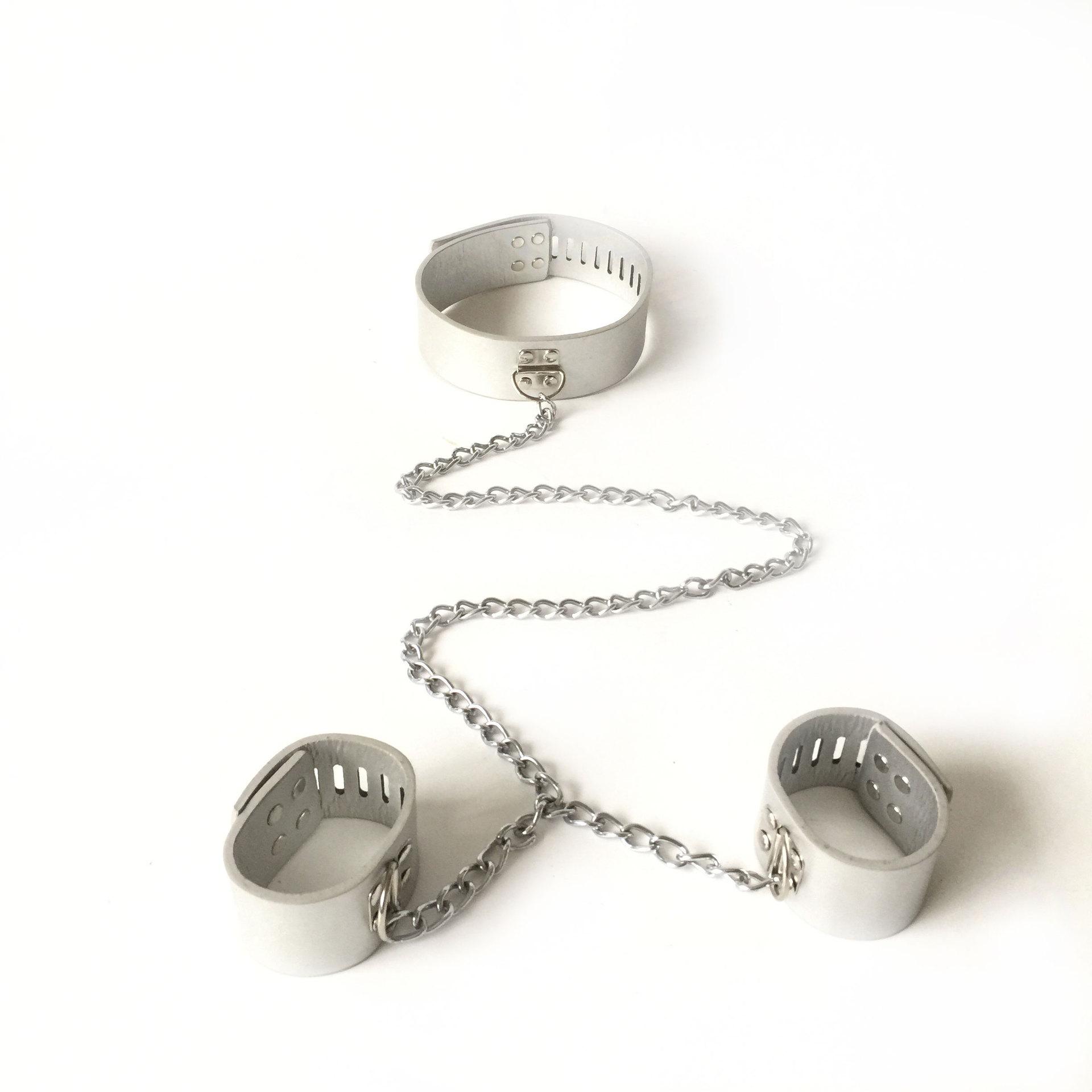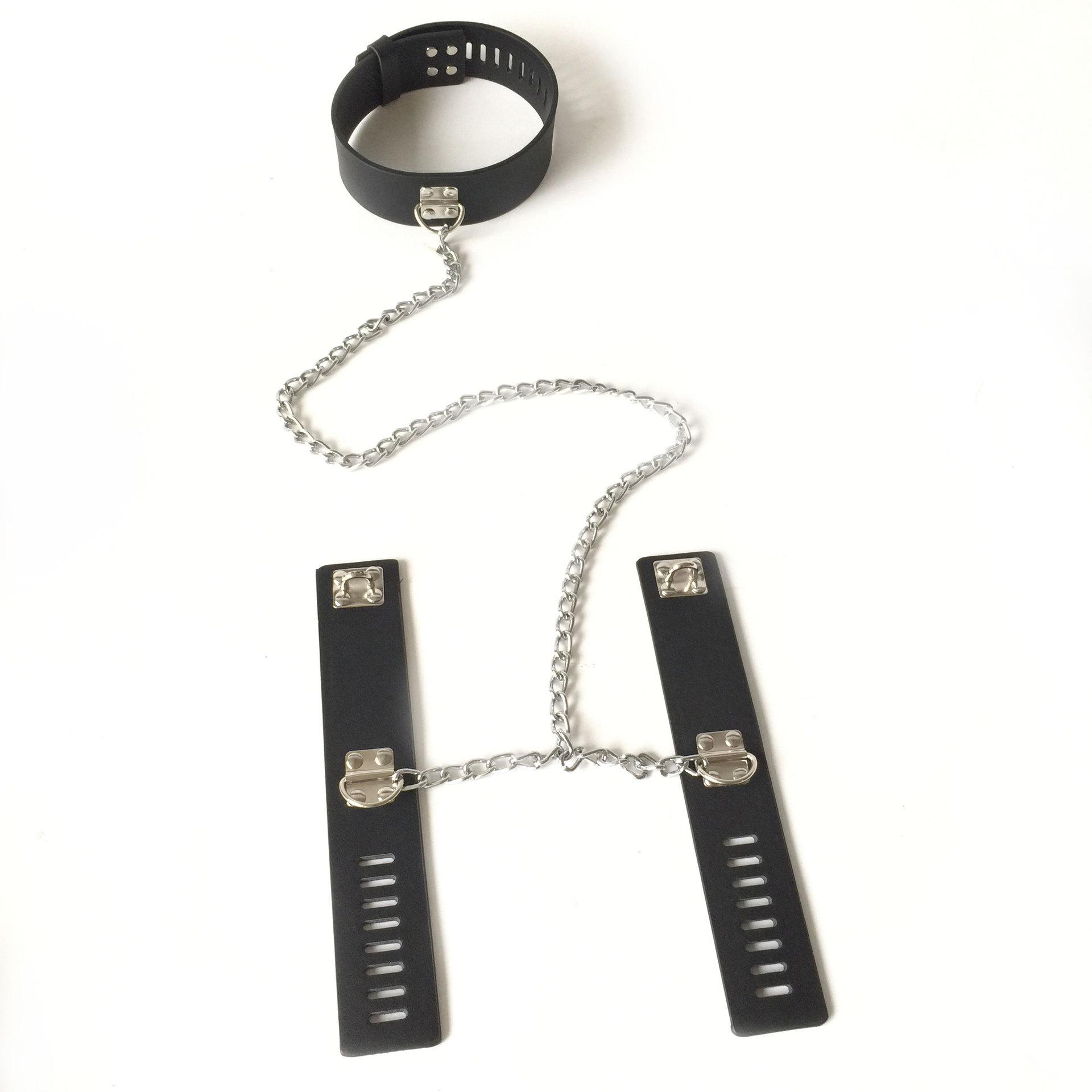 Tamanho: circunferência do colar 34-50CM circunferência das algemas 15,5-24CM, comprimento da corrente principal 70CM, comprimento da corrente de ramificação 18CM