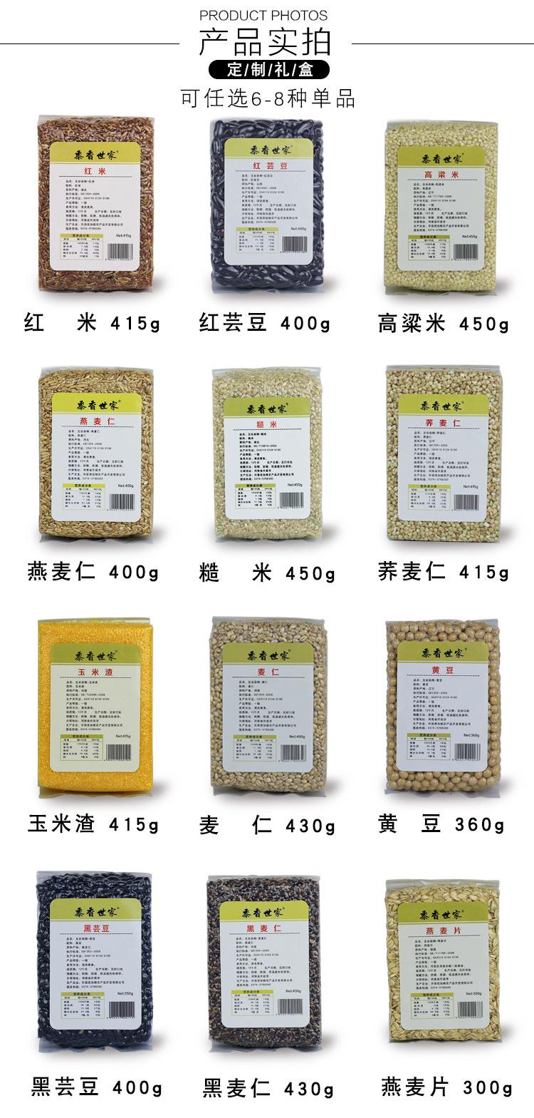 | 4 | Caixa de presente de farinha de grãos 6 sacos | 2530 | 11 x 29 x 38 | 415g de arroz vermelho, 450g de arroz integral 450g de arroz de sorgo, 400g de arroz de aveia 400g de feijão roxo, 415g de grãos de trigo sarraceno |