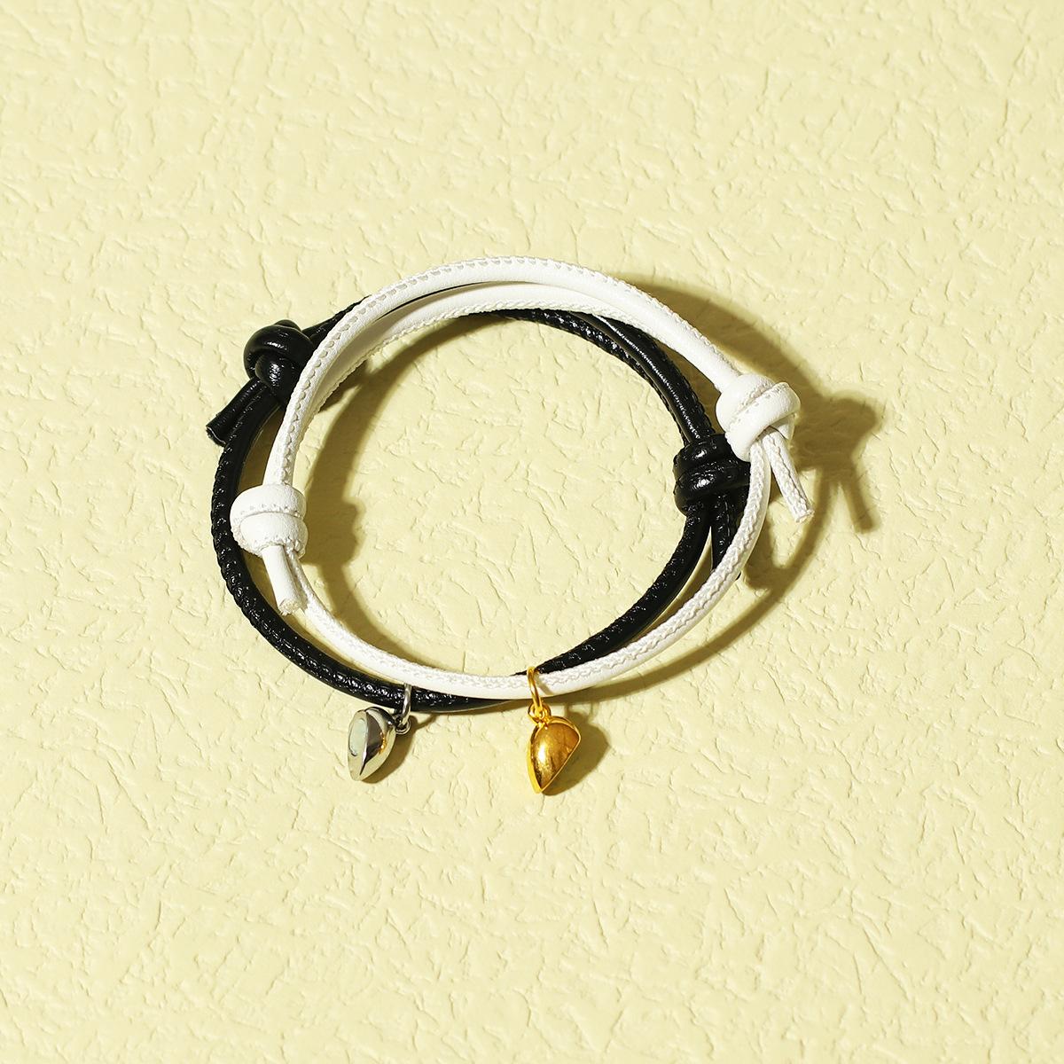 Pulseira de amor nova transfronteiriça HJJ, corda preta e branca simples, prata e ouro, pêssego, coração, pulseira magnética em forma de coração para casal