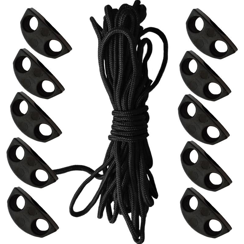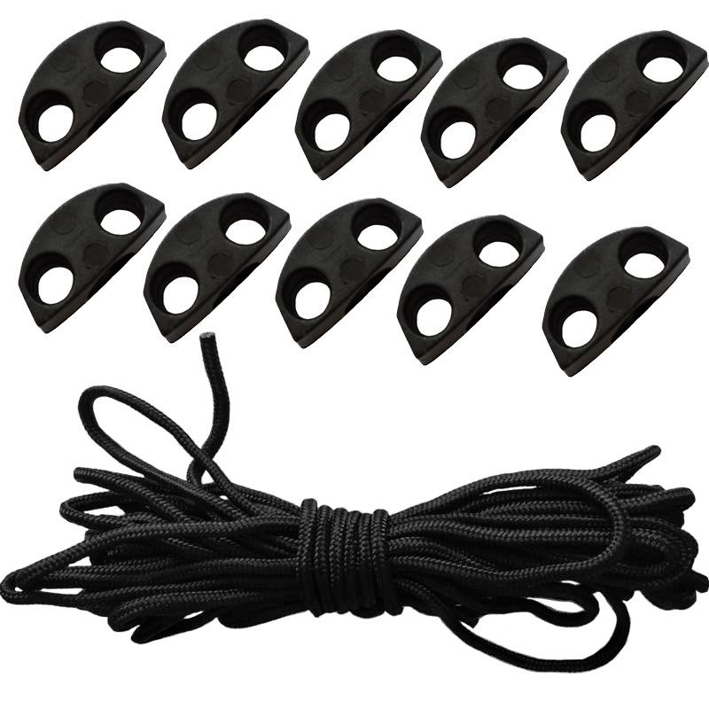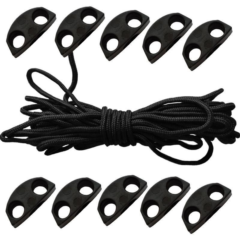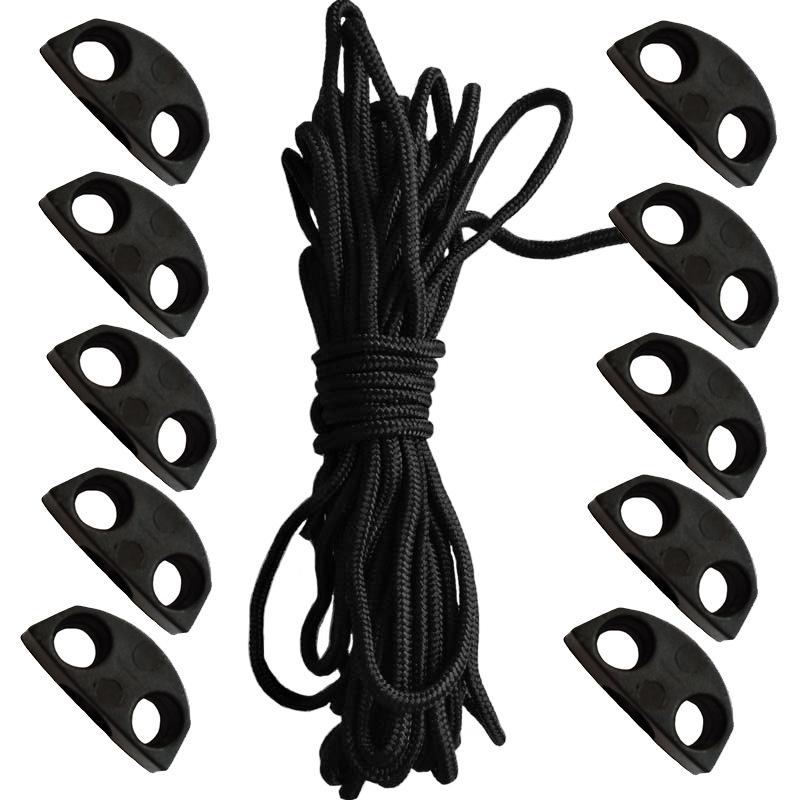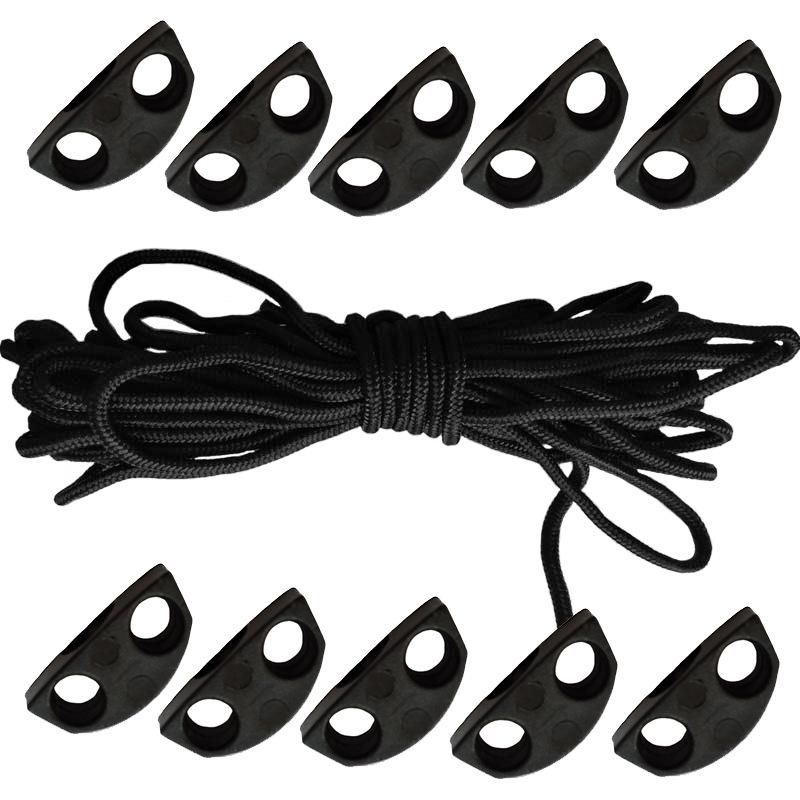 Material do produto: 10 fivelas de plástico 5 metros de corda central