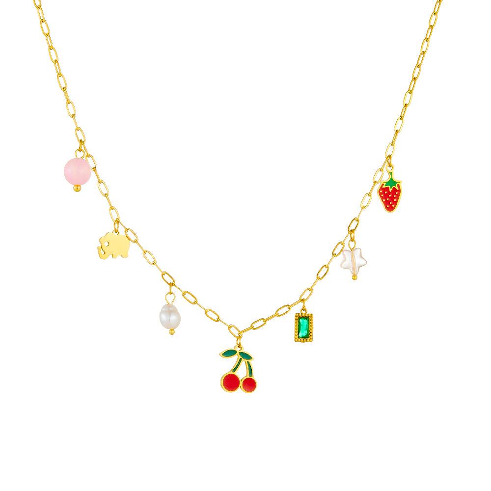 Compre Moda doce fresco estilo pastoral gotejamento cereja morango multi elemento pérola fruta pingente colar de aço inoxidável no atacado no Joom.pro
