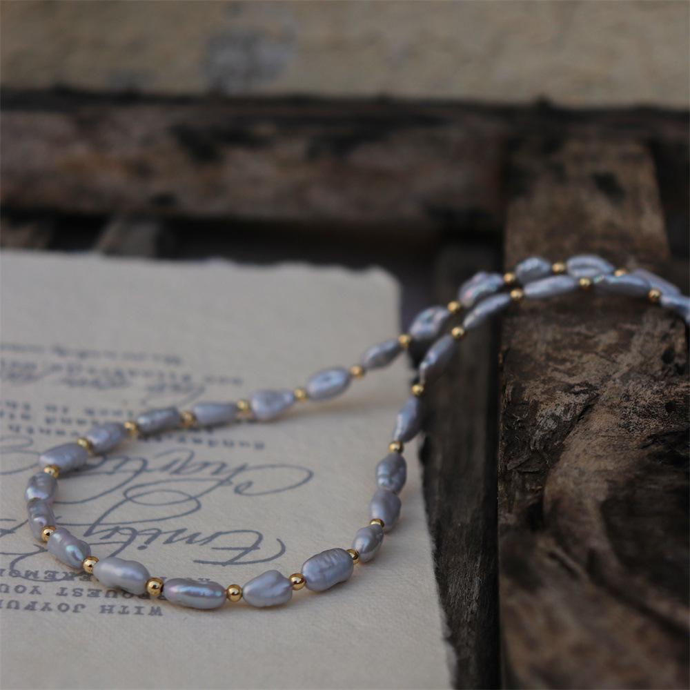 Material: Pérolas regeneradas não nucleares de água doce (cinza cânhamo otimizado) + acessórios de metal com forte retenção de cor