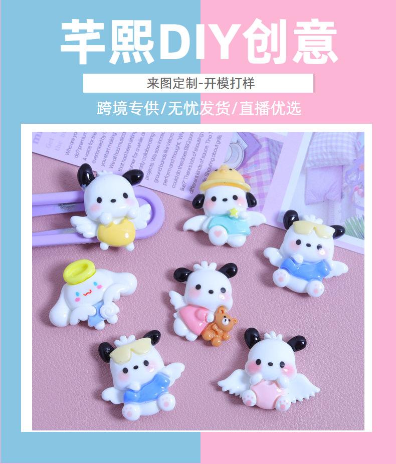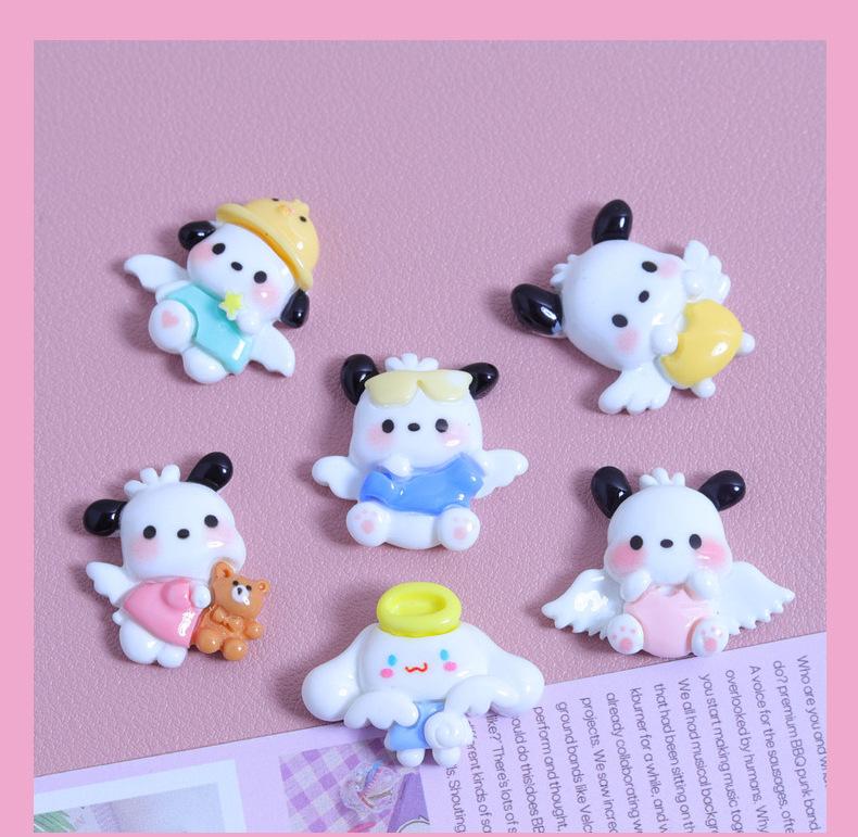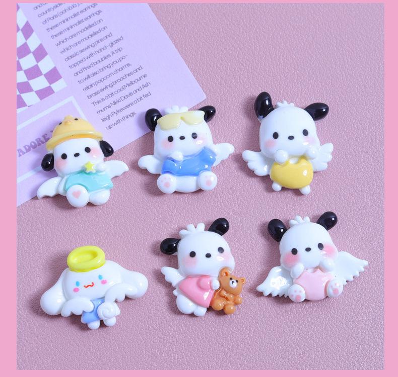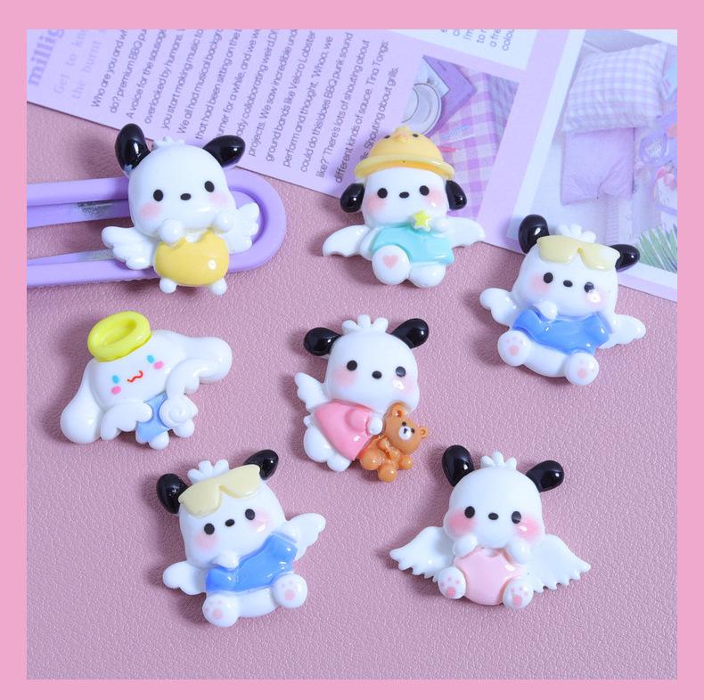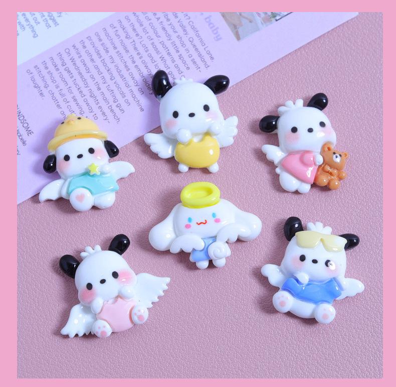 Asas pequeno cão desenho animado brilhante diy creme cola caseiro caso do telefone móvel grampo de cabelo jóias material resina acessórios