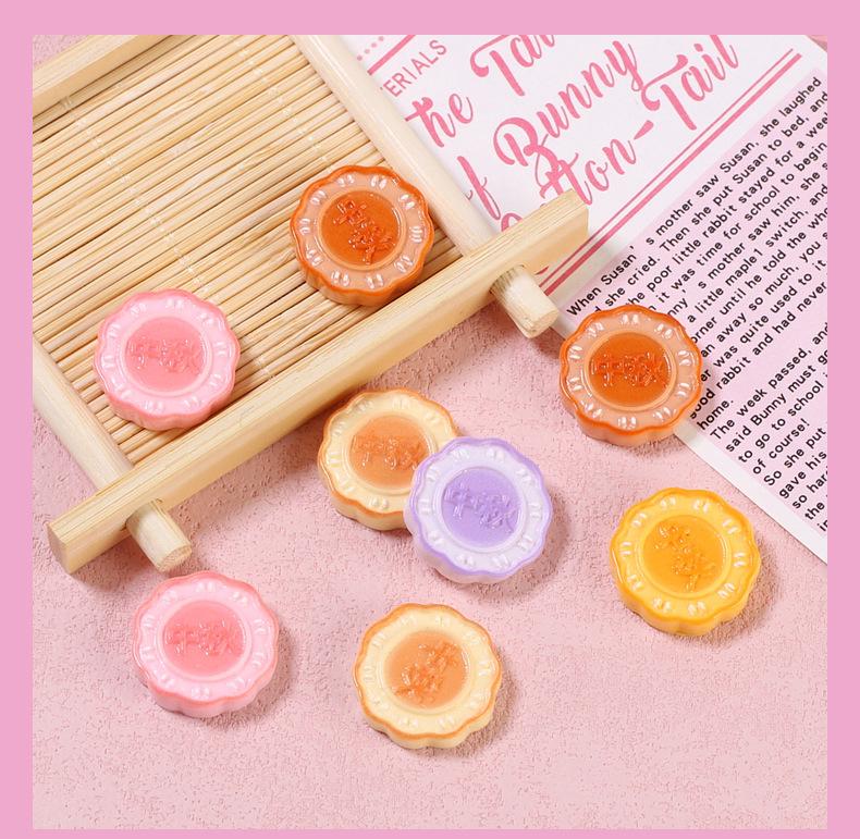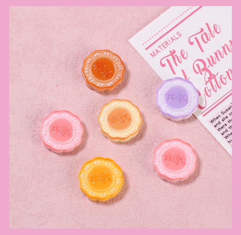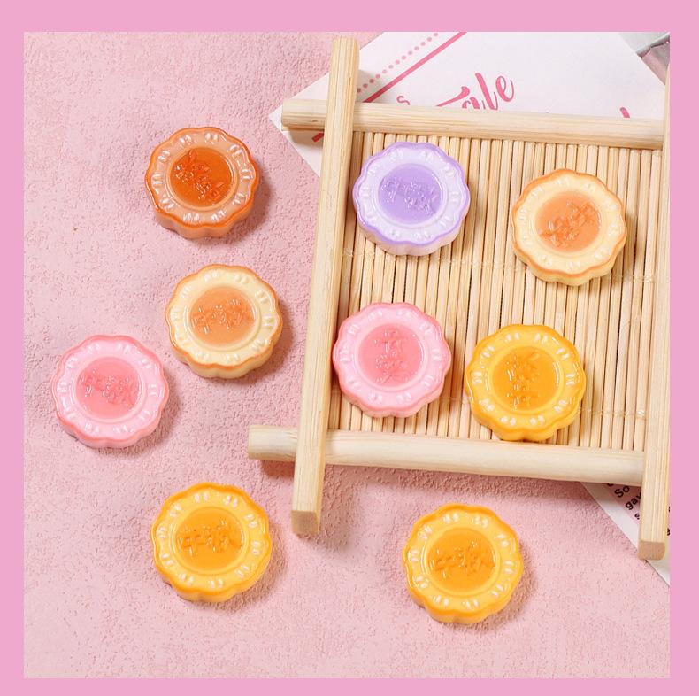 Acessórios de resina feitos à mão DIY Buraco Sapatos Fivela Grampo de cabelo Creme Cola Jóias Desenho animado Festival do meio do outono Reunião Bolo da lua Comida Brincar