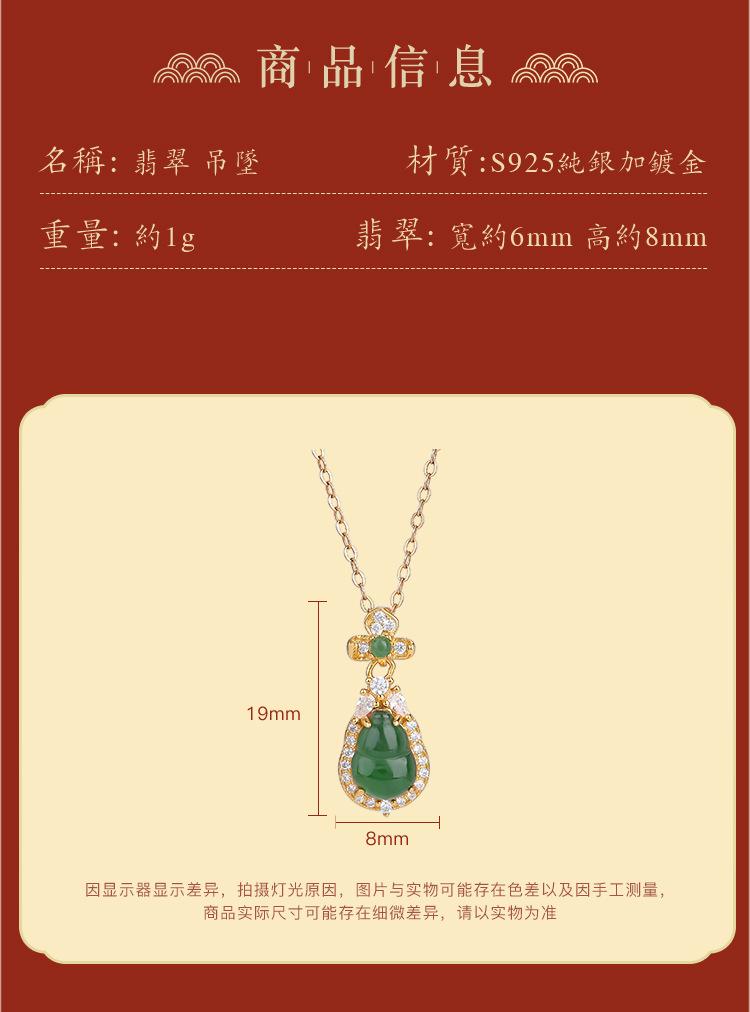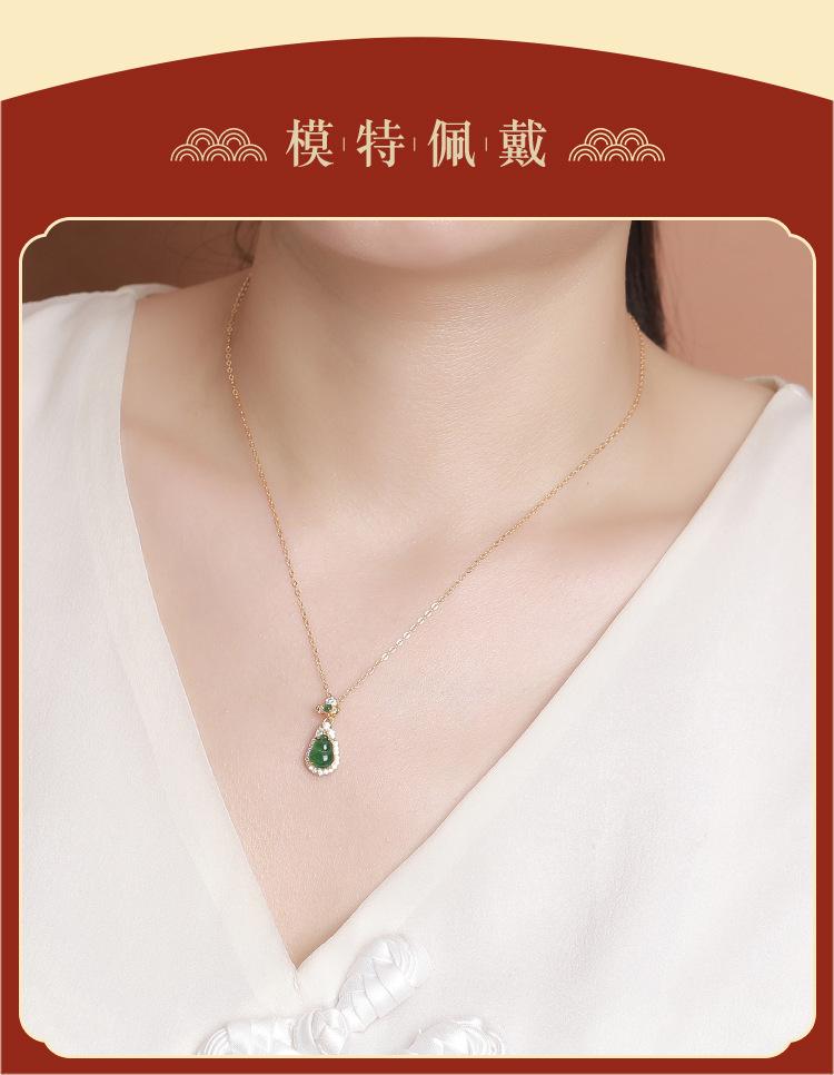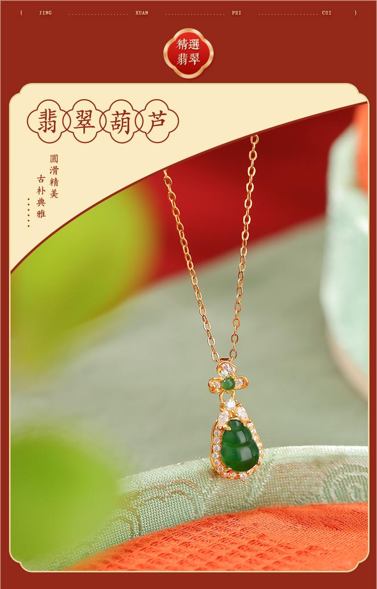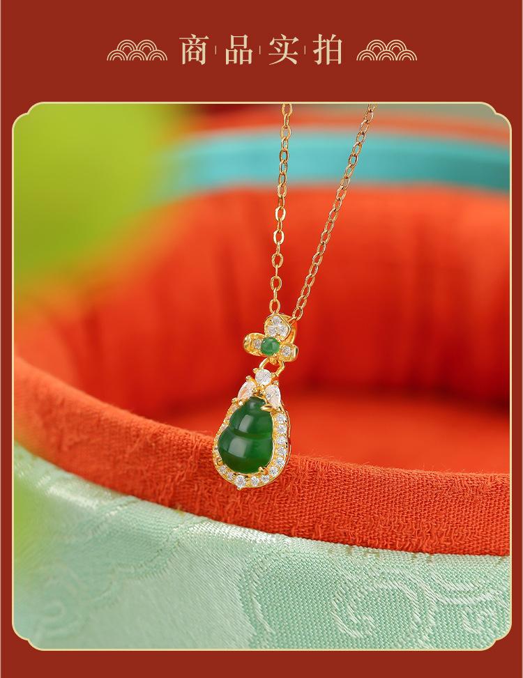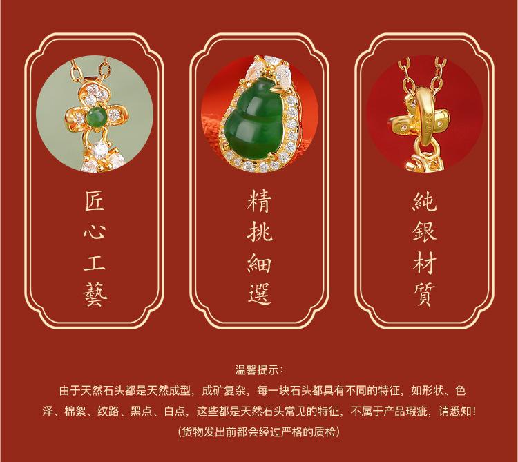 Yuebao Jewelry S925 Prata Esterlina Banhado A Ouro Jade Retro Estilo Nacional Fulu Gourd Light Pingente de Luxo Elegante Pingente All-match
