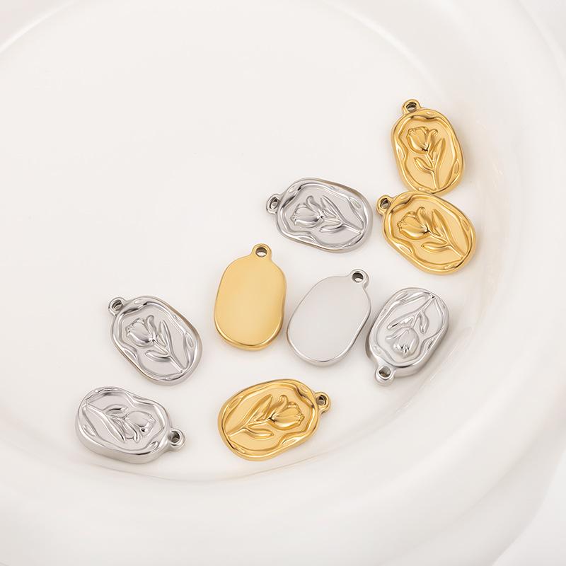 Compre Pingente de rosa oval em aço inoxidável, acessórios para joias, colar com pingente faça você mesmo, pulseira, acessórios de moda, pingente no atacado no Joom.pro