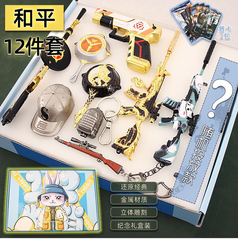 Set de Caja de Regalo Año del Conejo Periferia Pollo de la Paz Dragón Dorado de Cinco Garras Modelo Original de Aleación Fuego Sagrado Juguete Set de 12 piezas