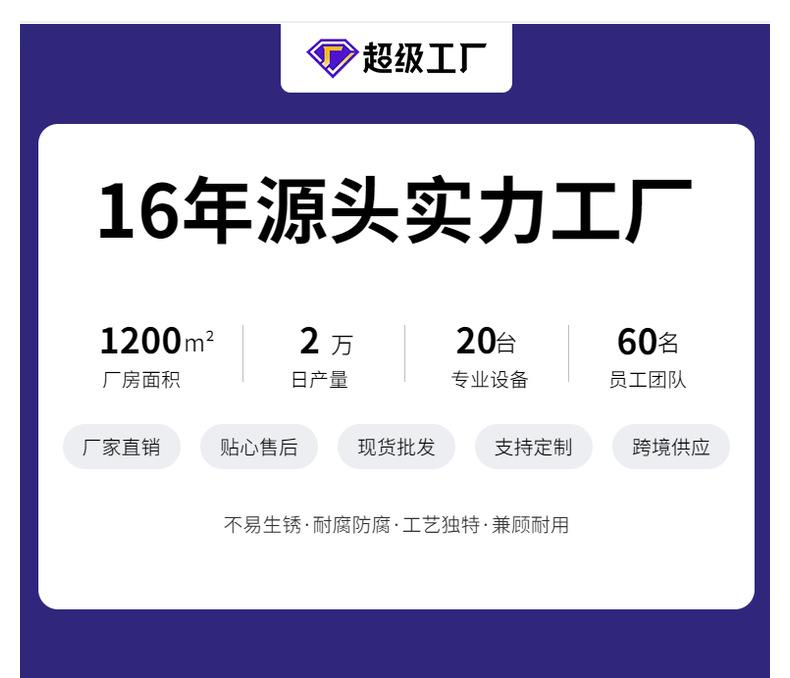 | 10 Ano Experiência profissional em produção 400 10.000 peças Quantidade de estoque durante todo o ano 10 Ano Experiência profissional em produção 6 10.000 peças Volume de produção diário 1100 ㎡ Área de fábrica | ||