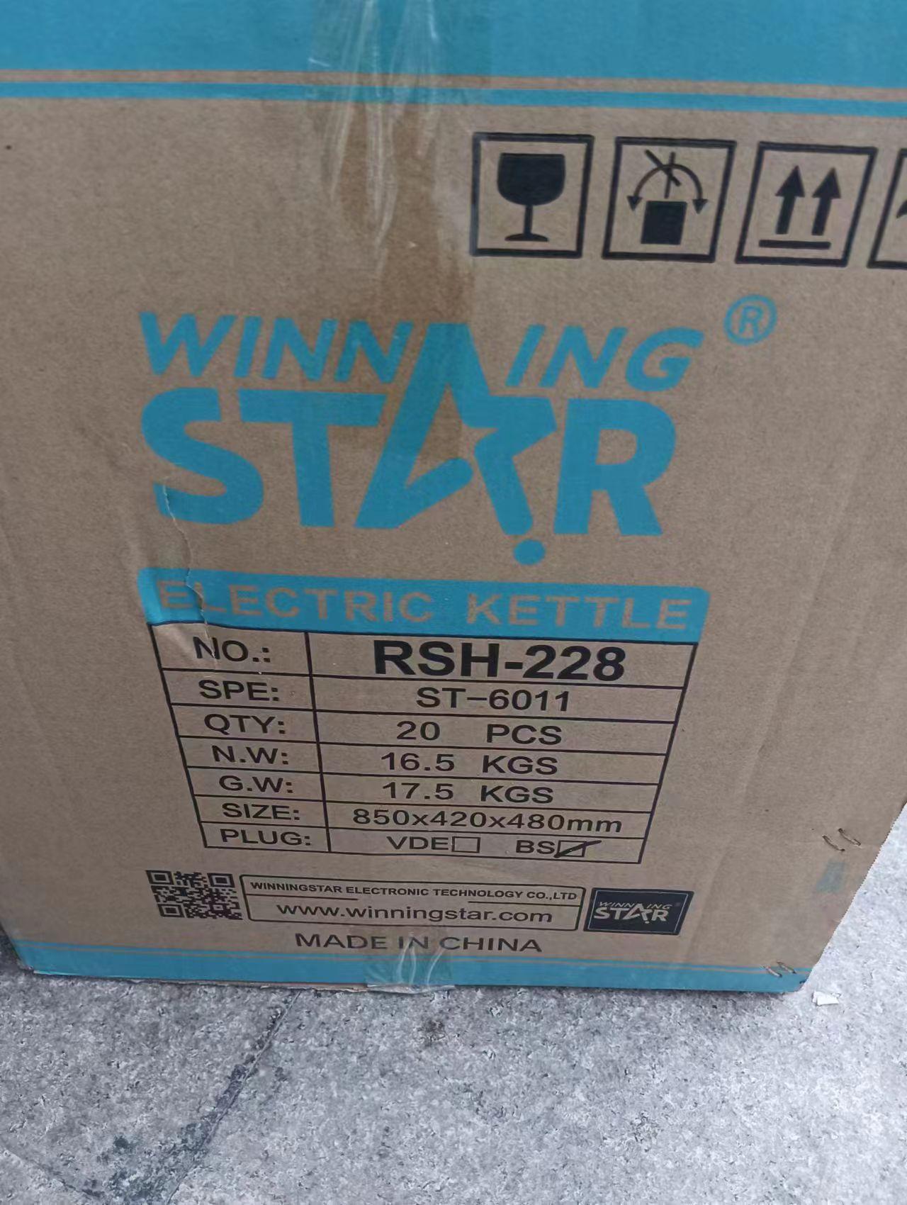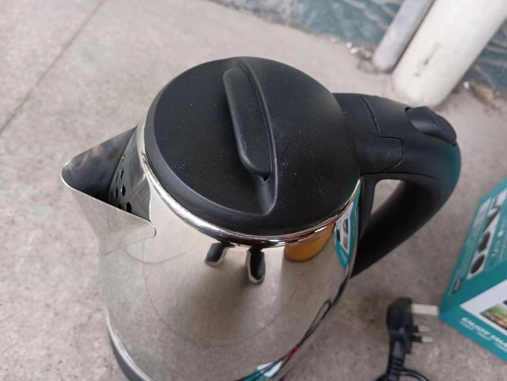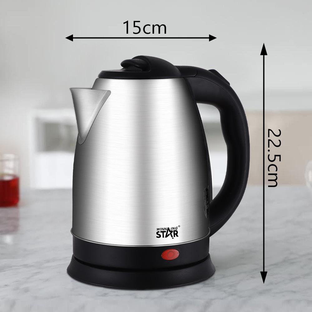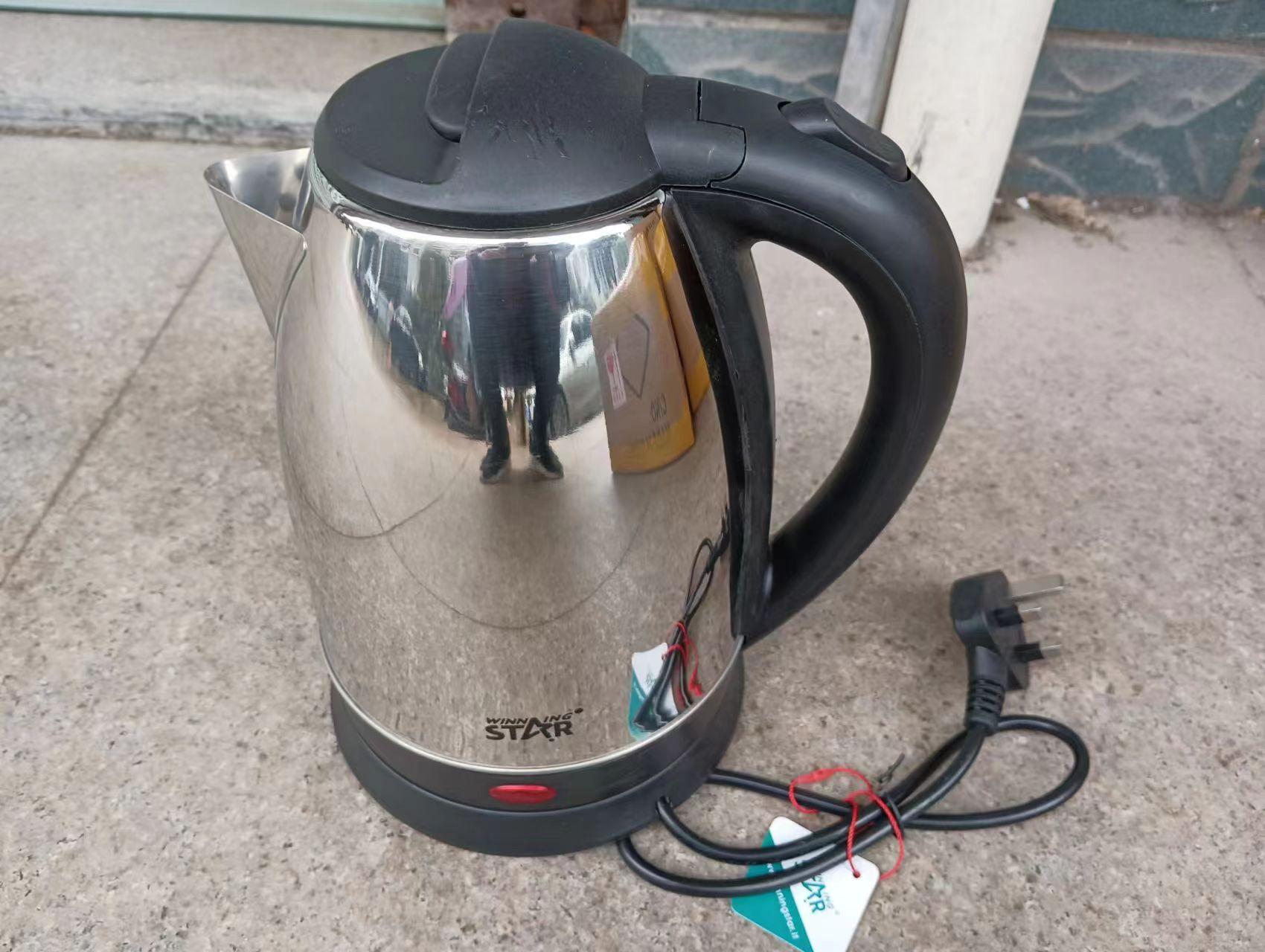 Chaleira elétrica, ST-6011 (CZ-520b), plugue britânico, plugue europeu. Capacidade: 1,8 L, Embalagem: caixa de cor ondulada de 3 camadas; Voltagem: AC 220 V-240 V, 50/60 HZ, Potência: 1500 W; Material: corpo de aço inoxidável 201 # de 0,25 mm de espessura, peças de plástico PP preto (as peças de plástico são feitas de material preto de alto brilho), tampa interna de aço inoxidável, termostato anti-queima a seco de controle de temperatura de ouro único, cabo de alimentação de cobre completo quadrado 3 * 0,75 com comprimento total de 75 cm, fio de cobre completo quadrado 0,5 dentro, terminais de cobre cromados. Espessura da placa de aquecimento 0,3 MM. Tamanho do produto: 22,5 * 15 cm (excluindo a base), cor: cor de aço inoxidável + peças de plástico preto.