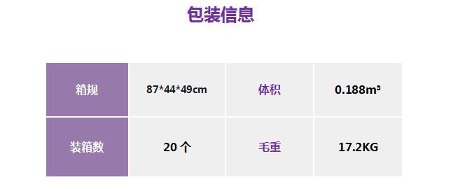 Há 20 unidades em uma caixa, o tamanho da caixa externa é 85*42*48 cm e o peso bruto da caixa é 17,5 kg.