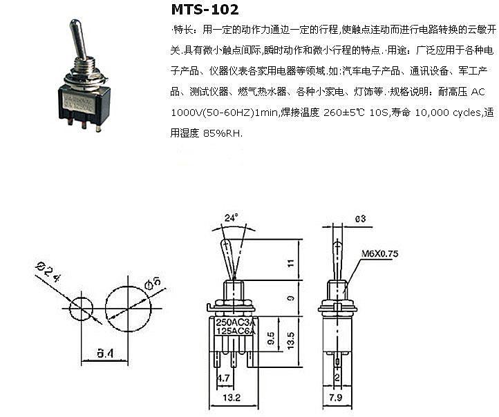 Interruptor de alternância simples MTS102