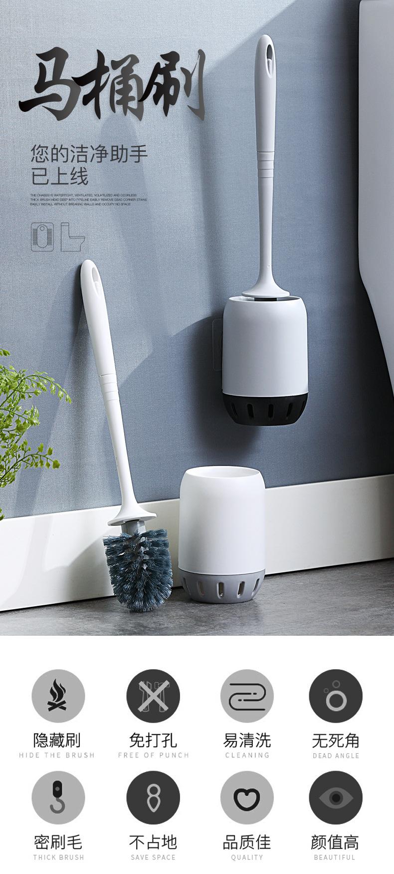Conjunto de escova de banheiro de chão, escova de limpeza de banheiro doméstico, cerdas macias, cabo longo, escova de limpeza de banheiro de parede