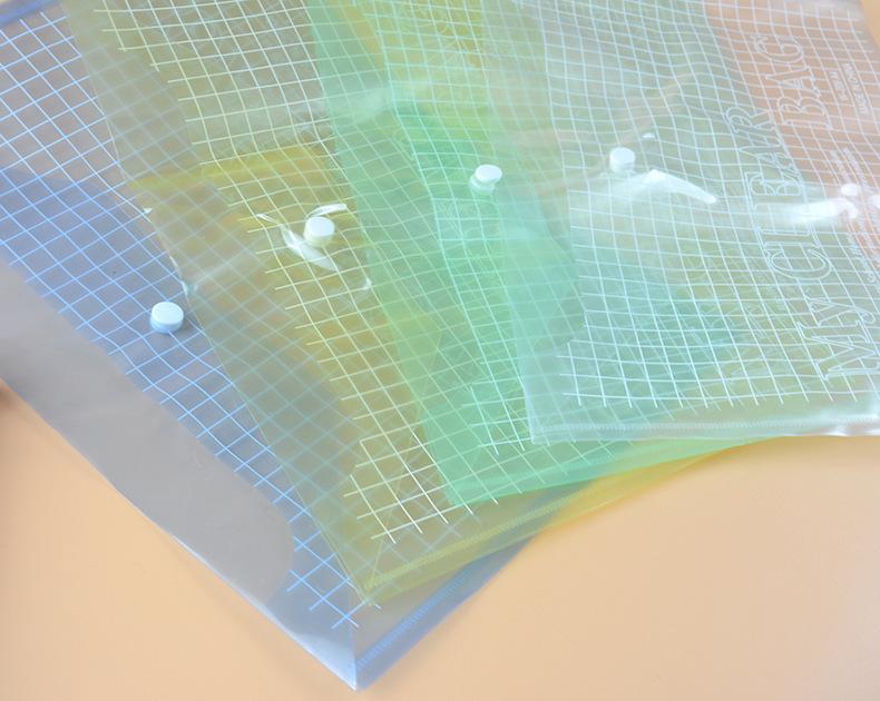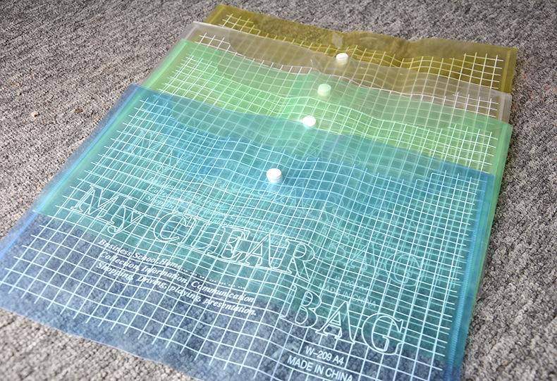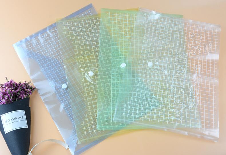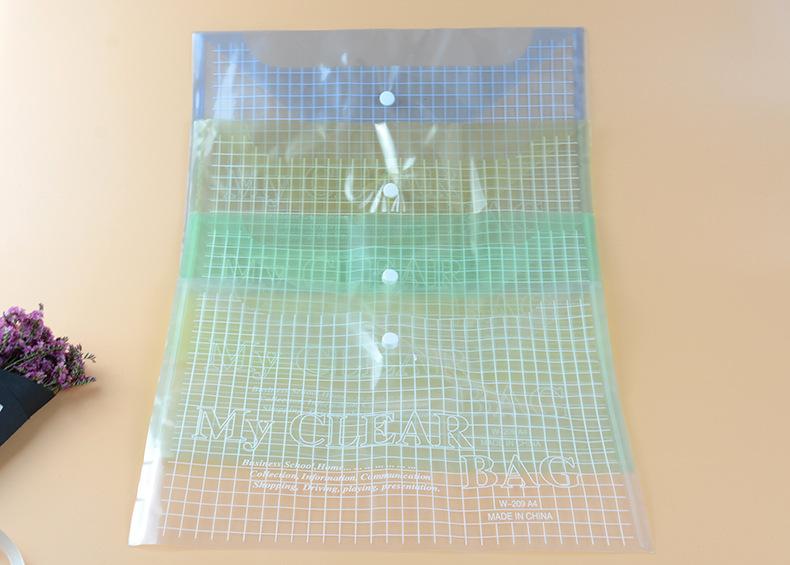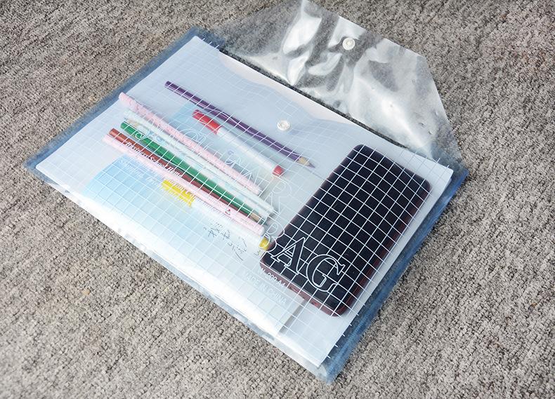 Bolso para documentos com botão de pressão transparente
