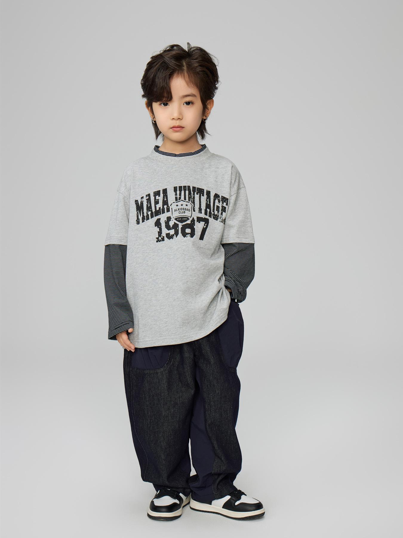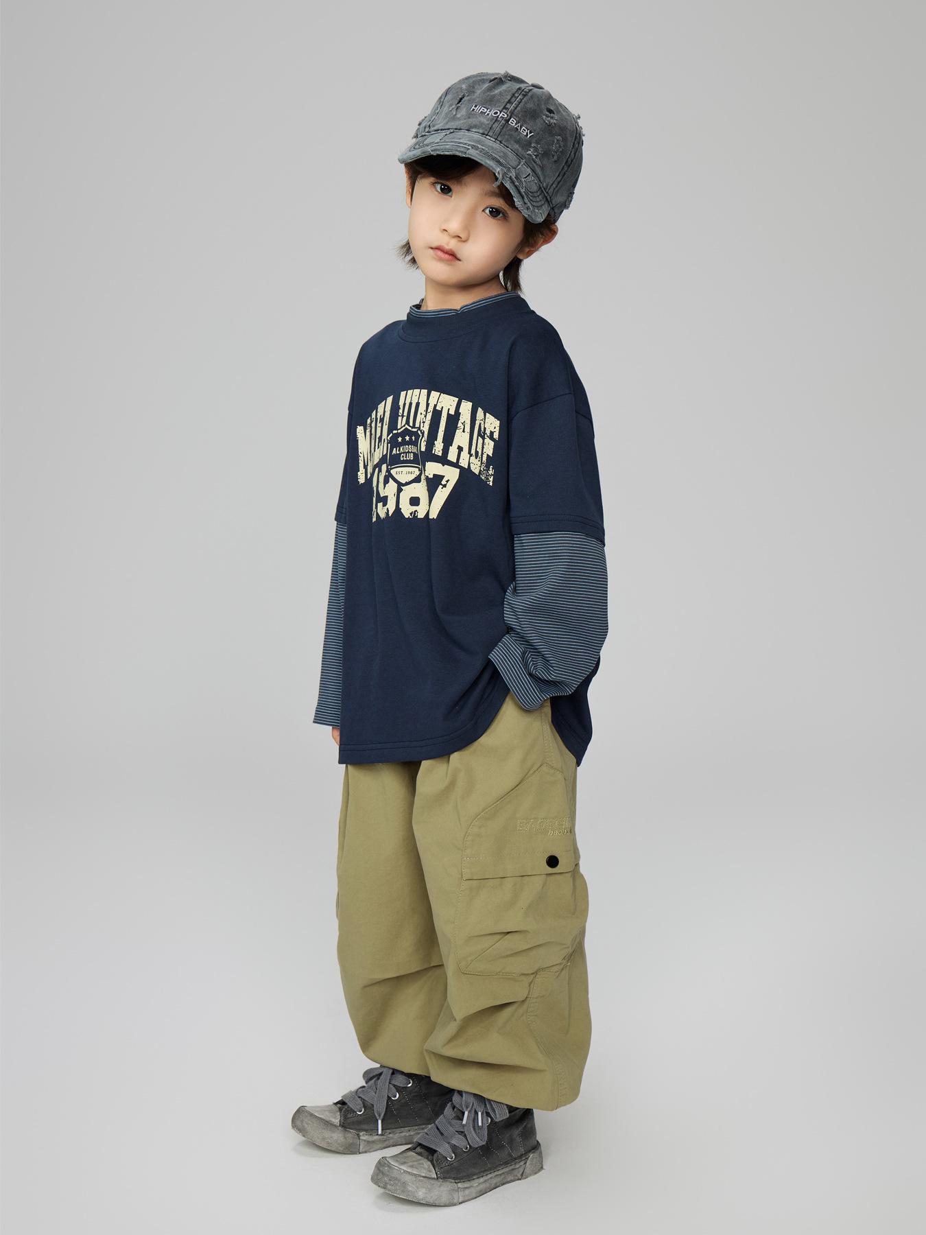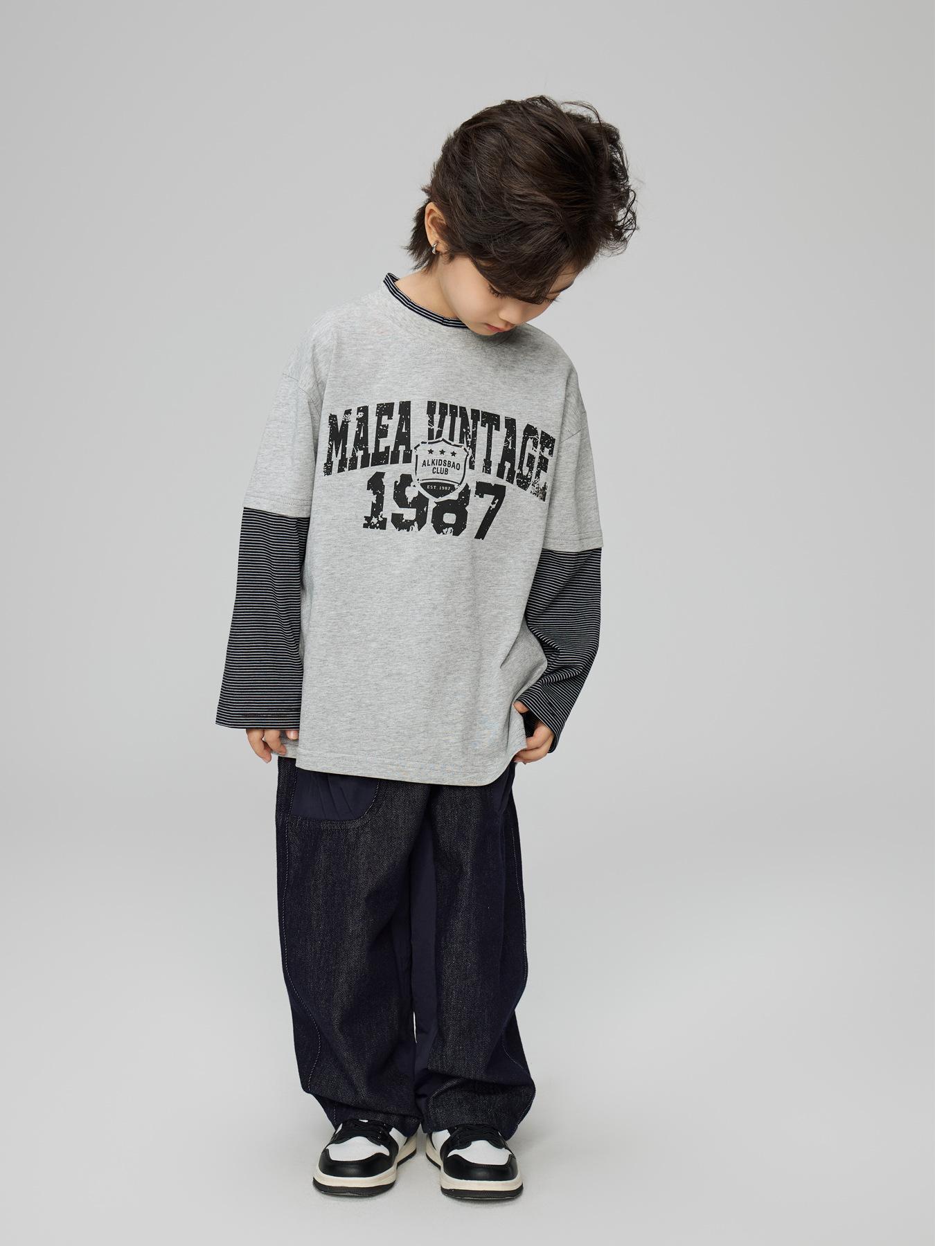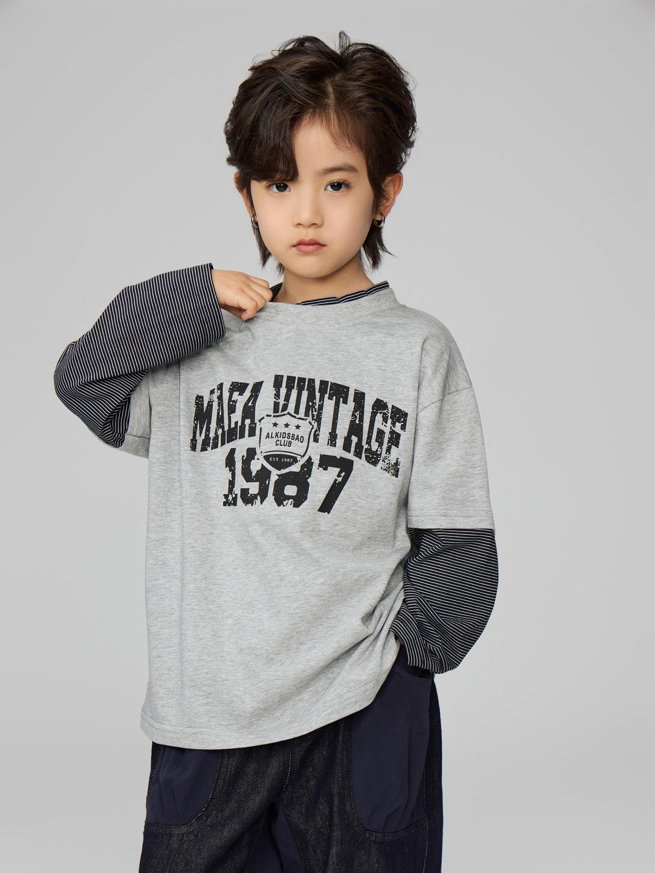 A versão listrada de duas peças falsas, decoração personalizada com letras impressas, cheia de moda, efeito legal no corpo ~
