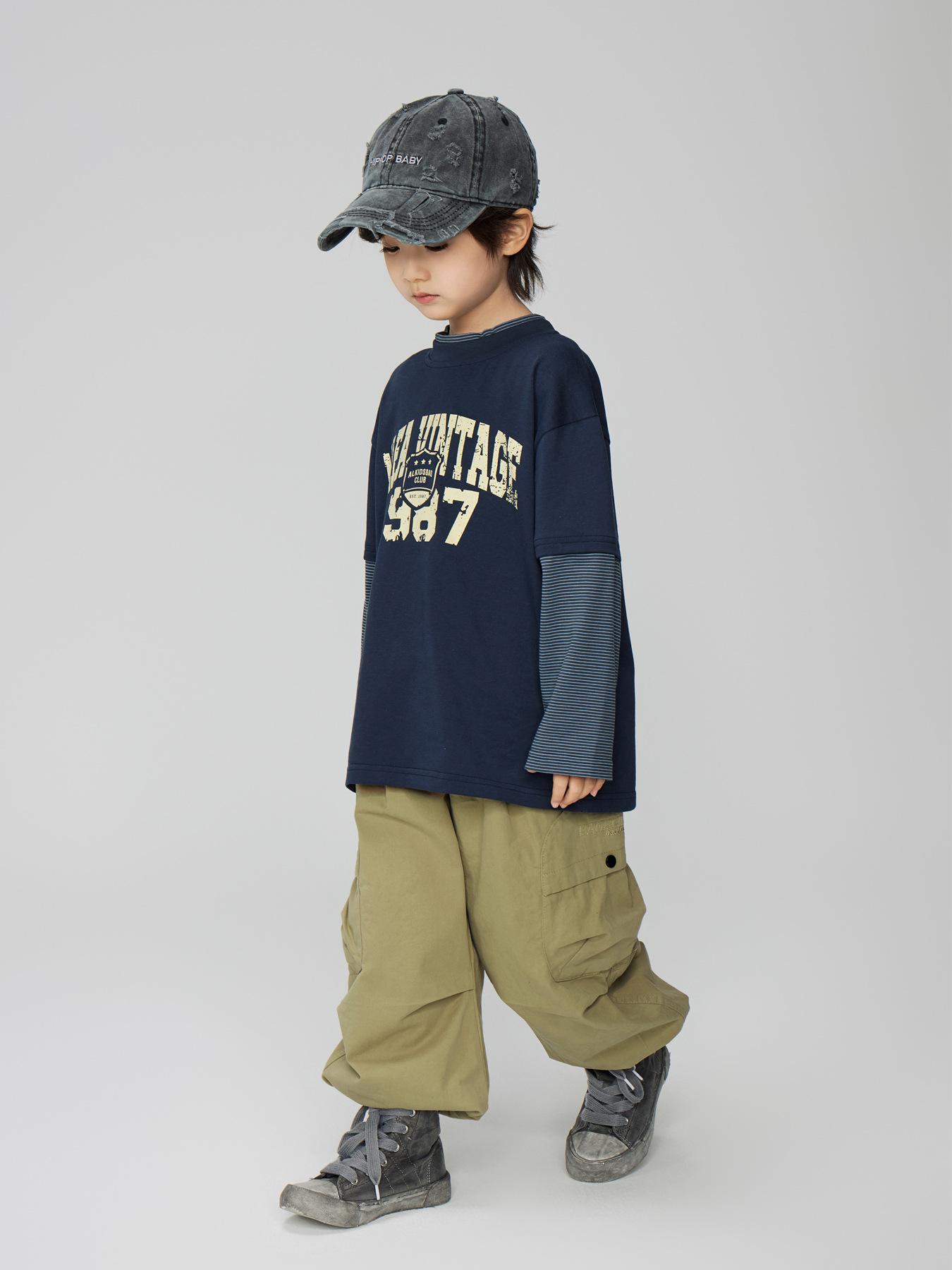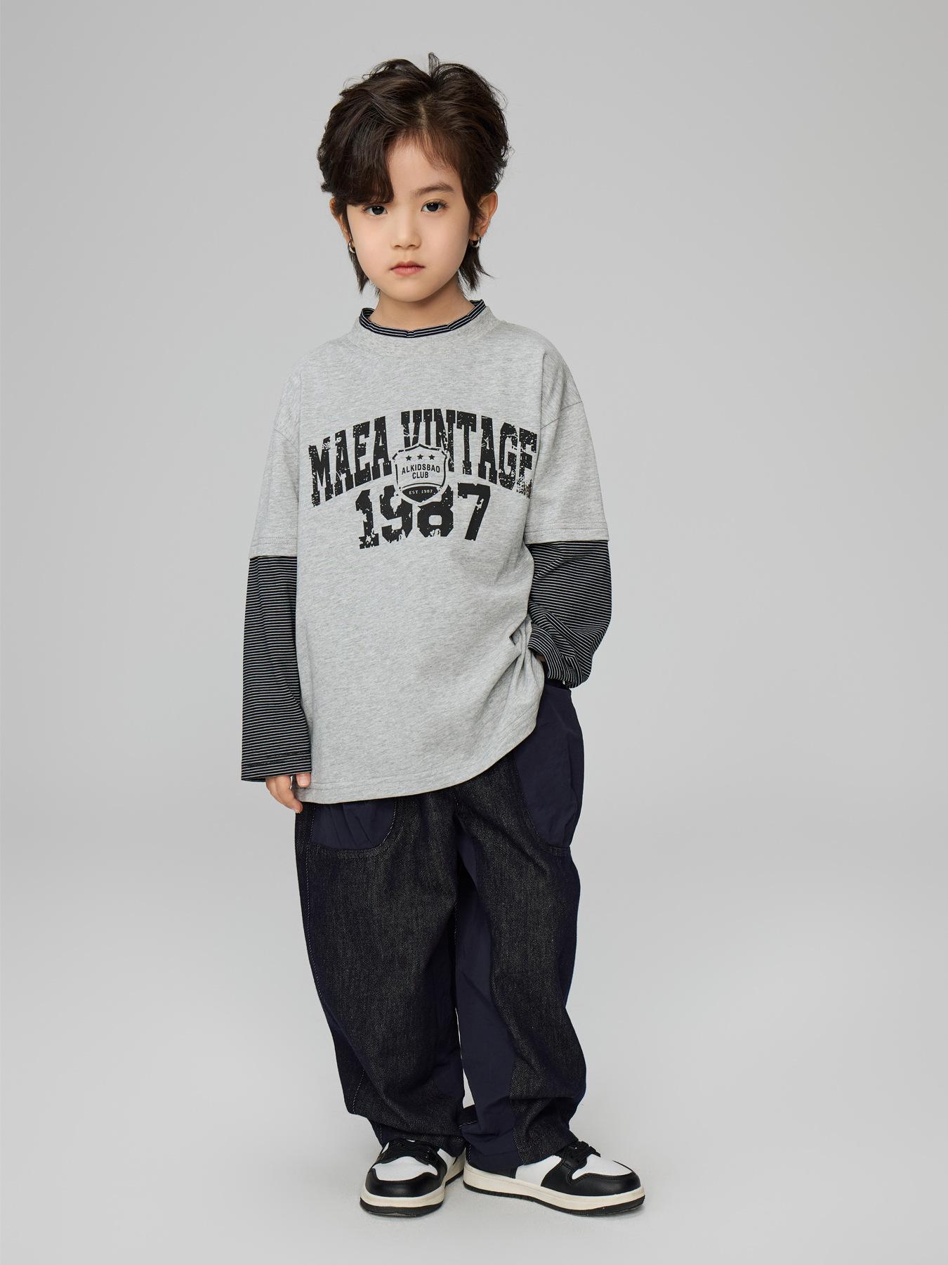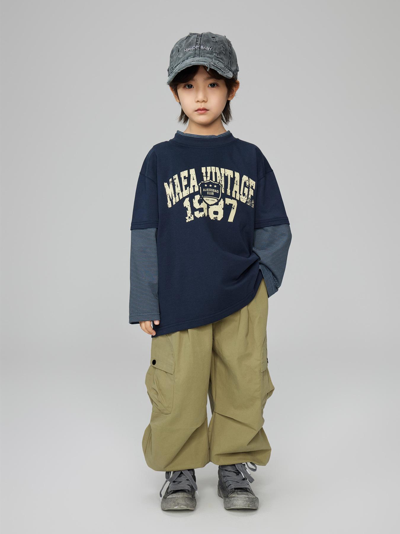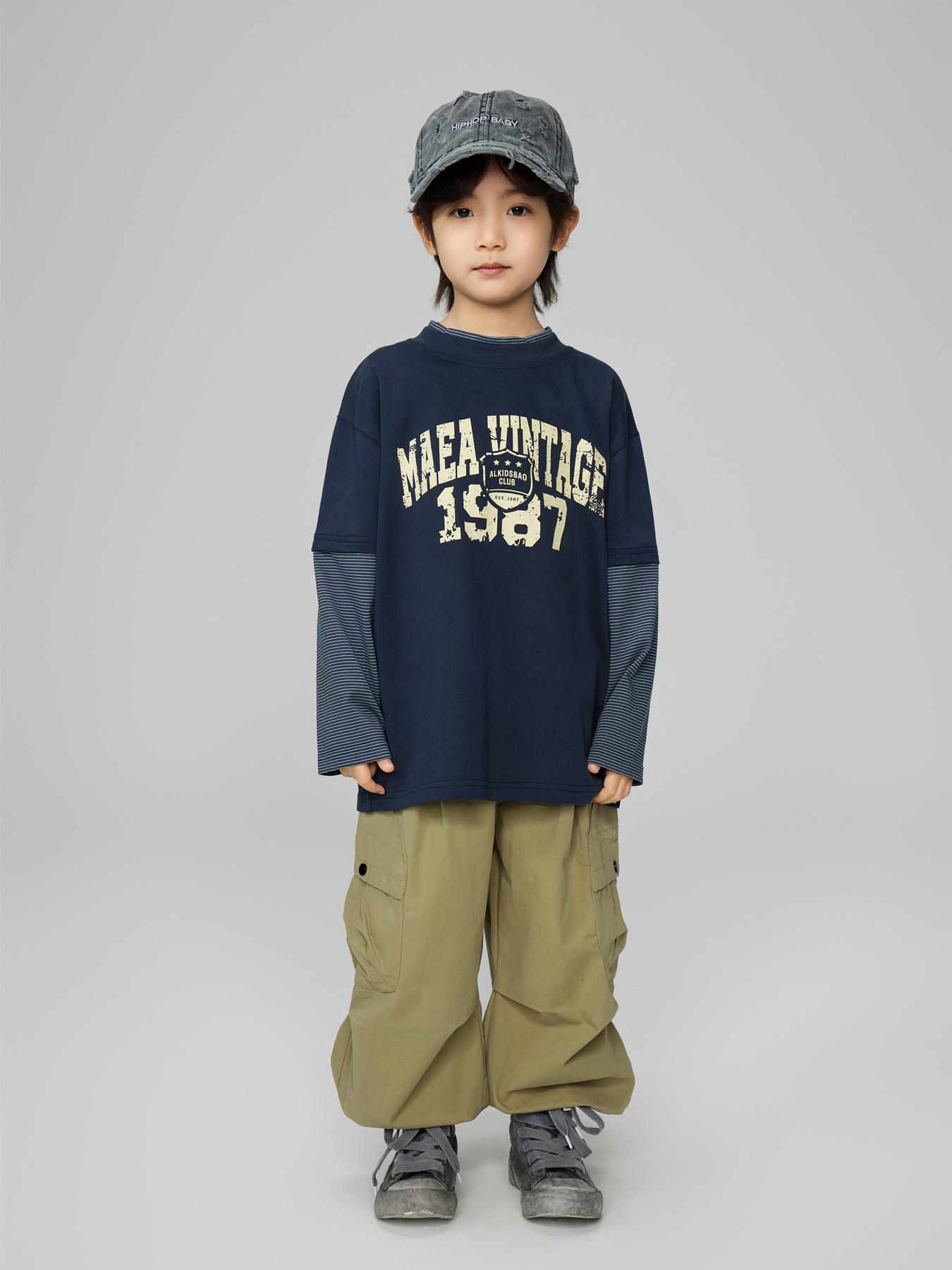 A versão listrada de duas peças falsas, decoração personalizada com letras impressas, cheia de moda, efeito legal no corpo ~