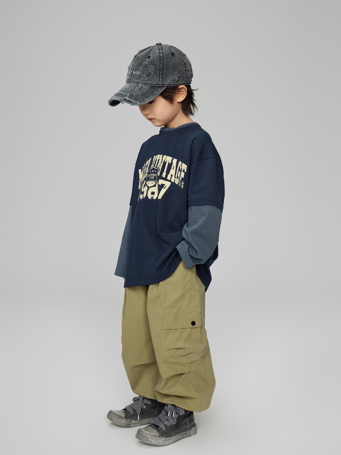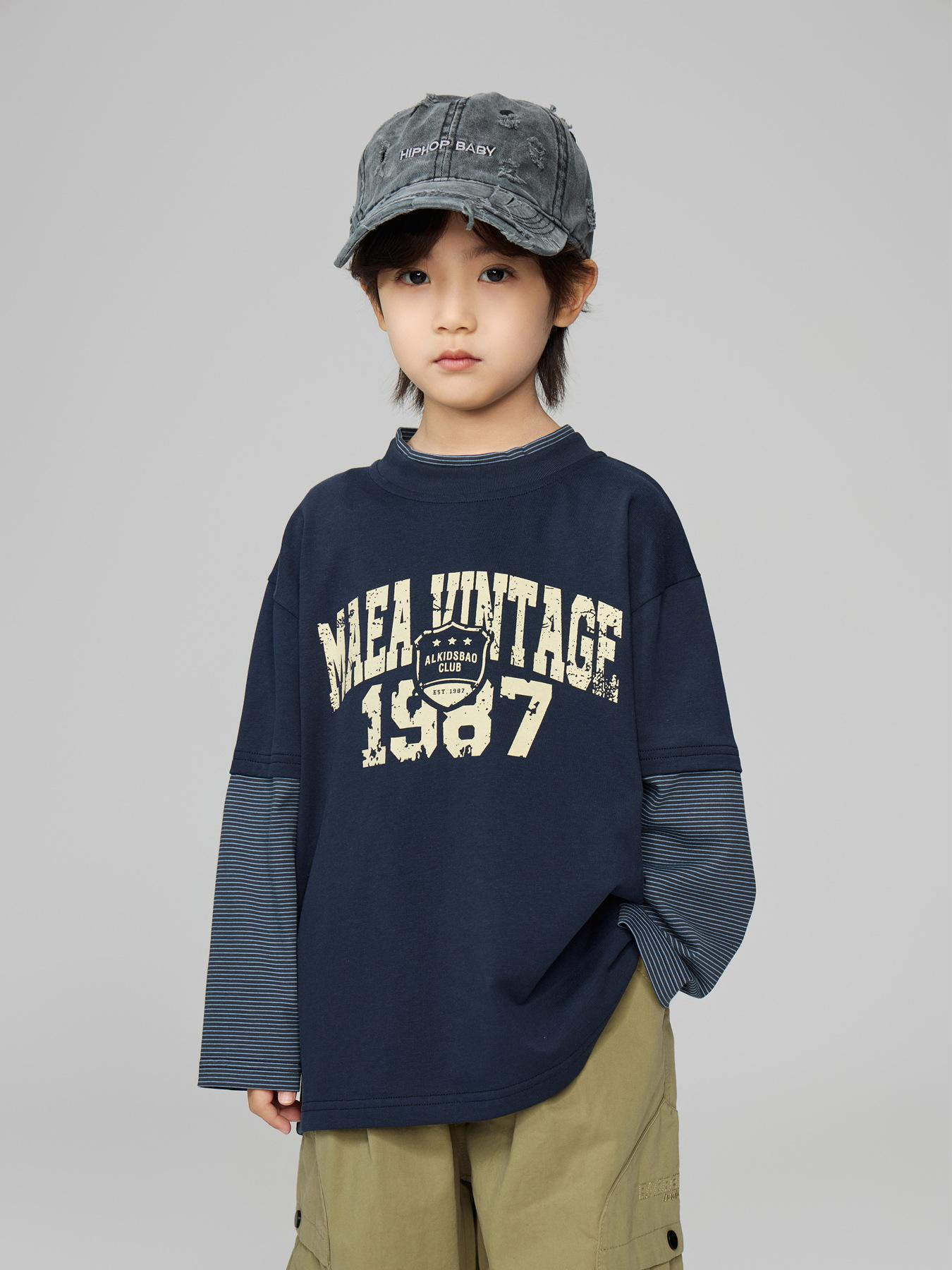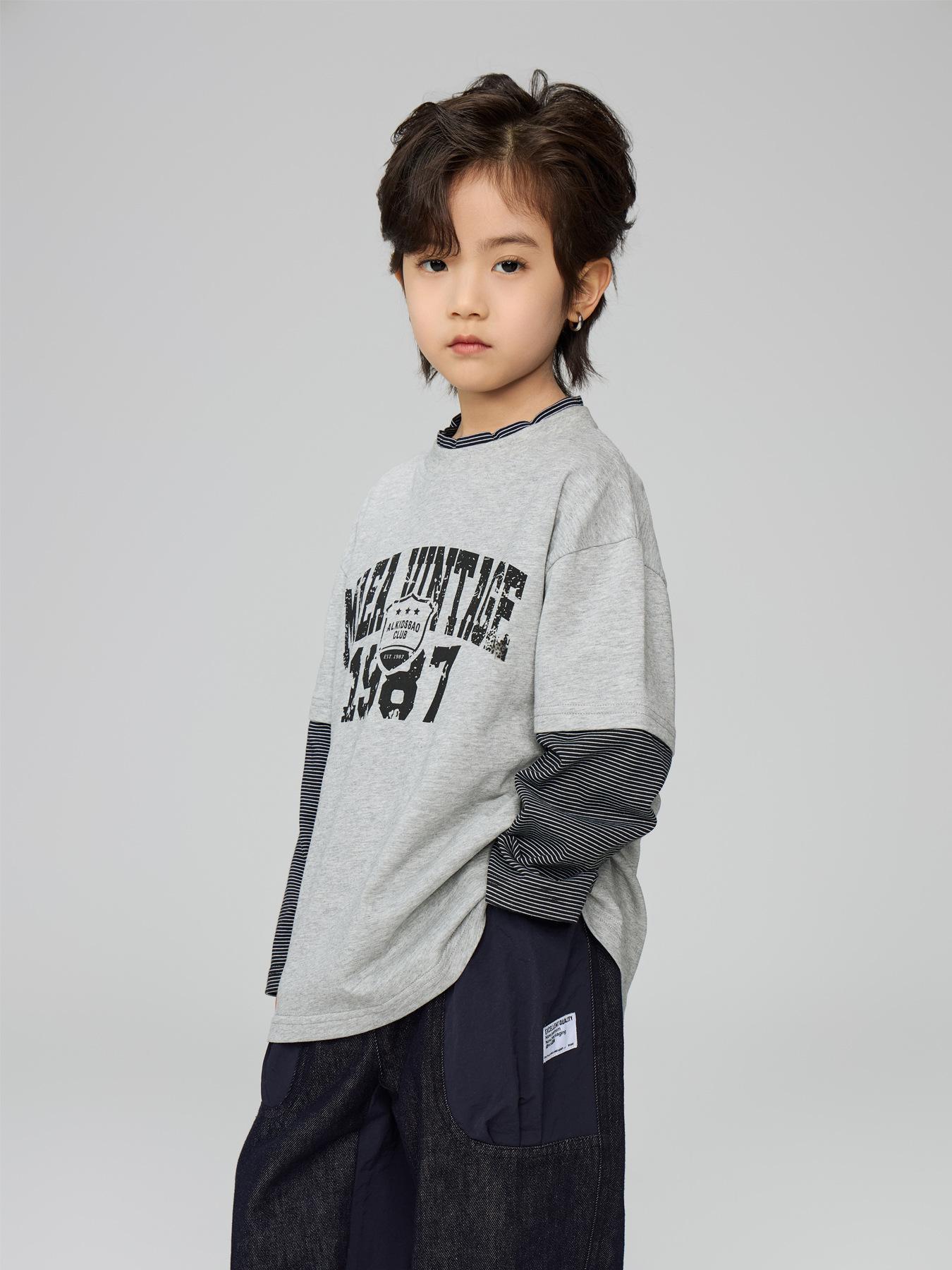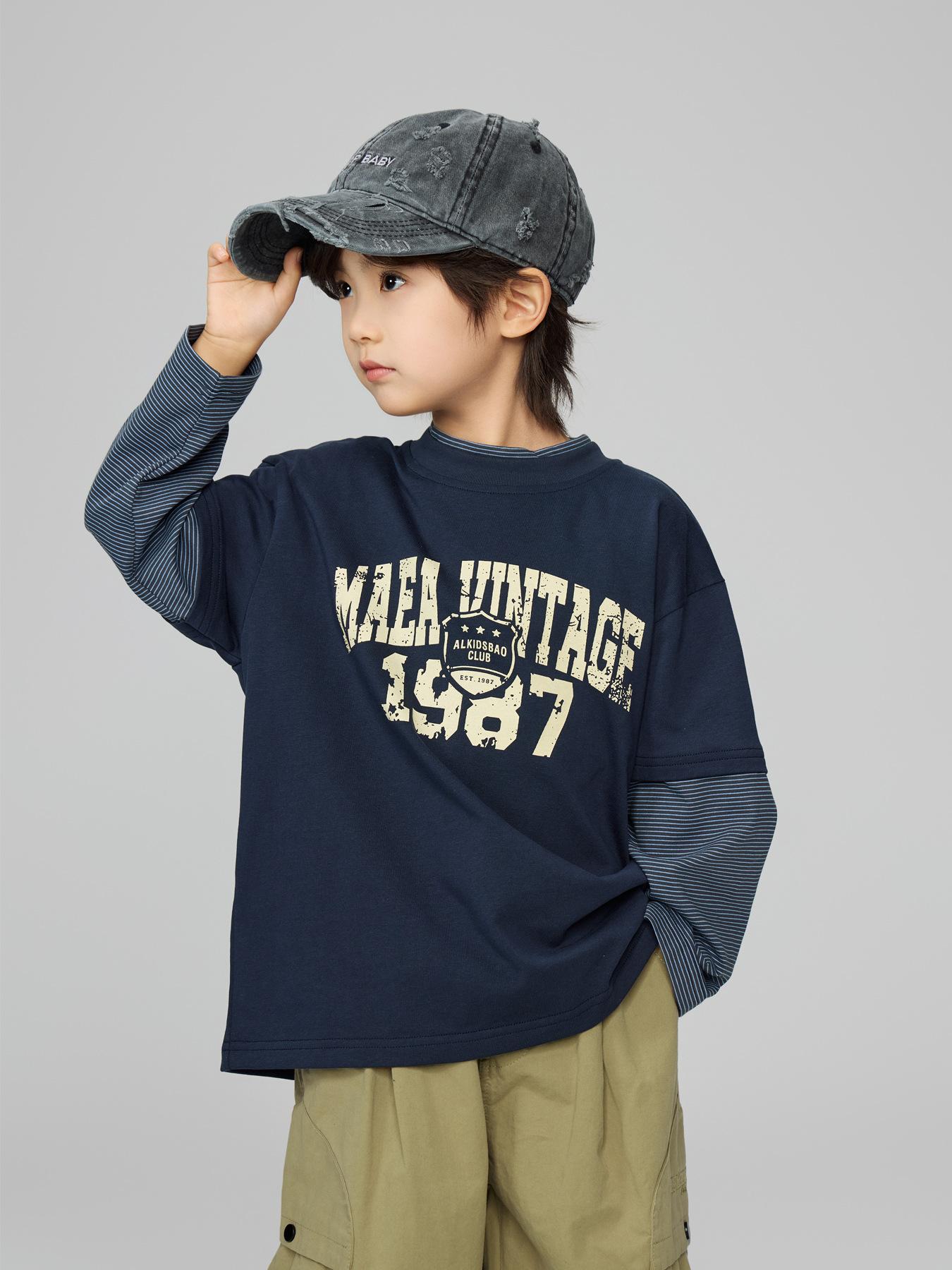 A versão listrada de duas peças falsas, decoração personalizada com letras impressas, cheia de moda, efeito legal no corpo ~