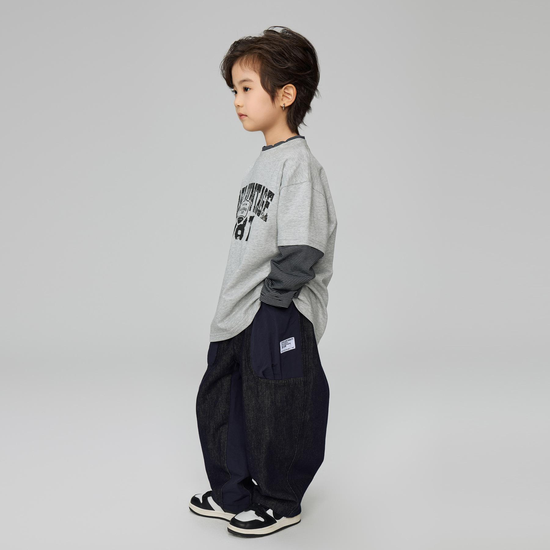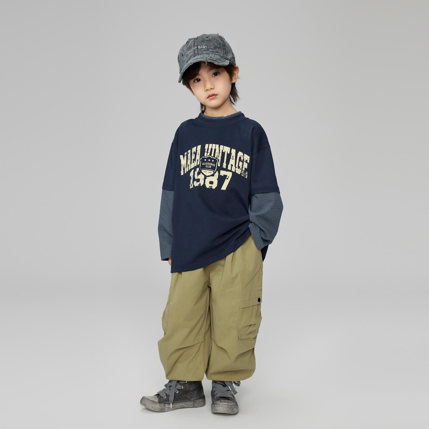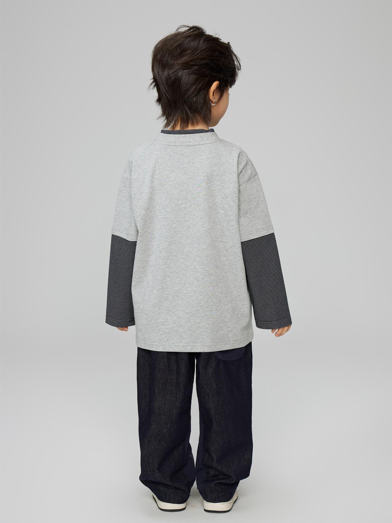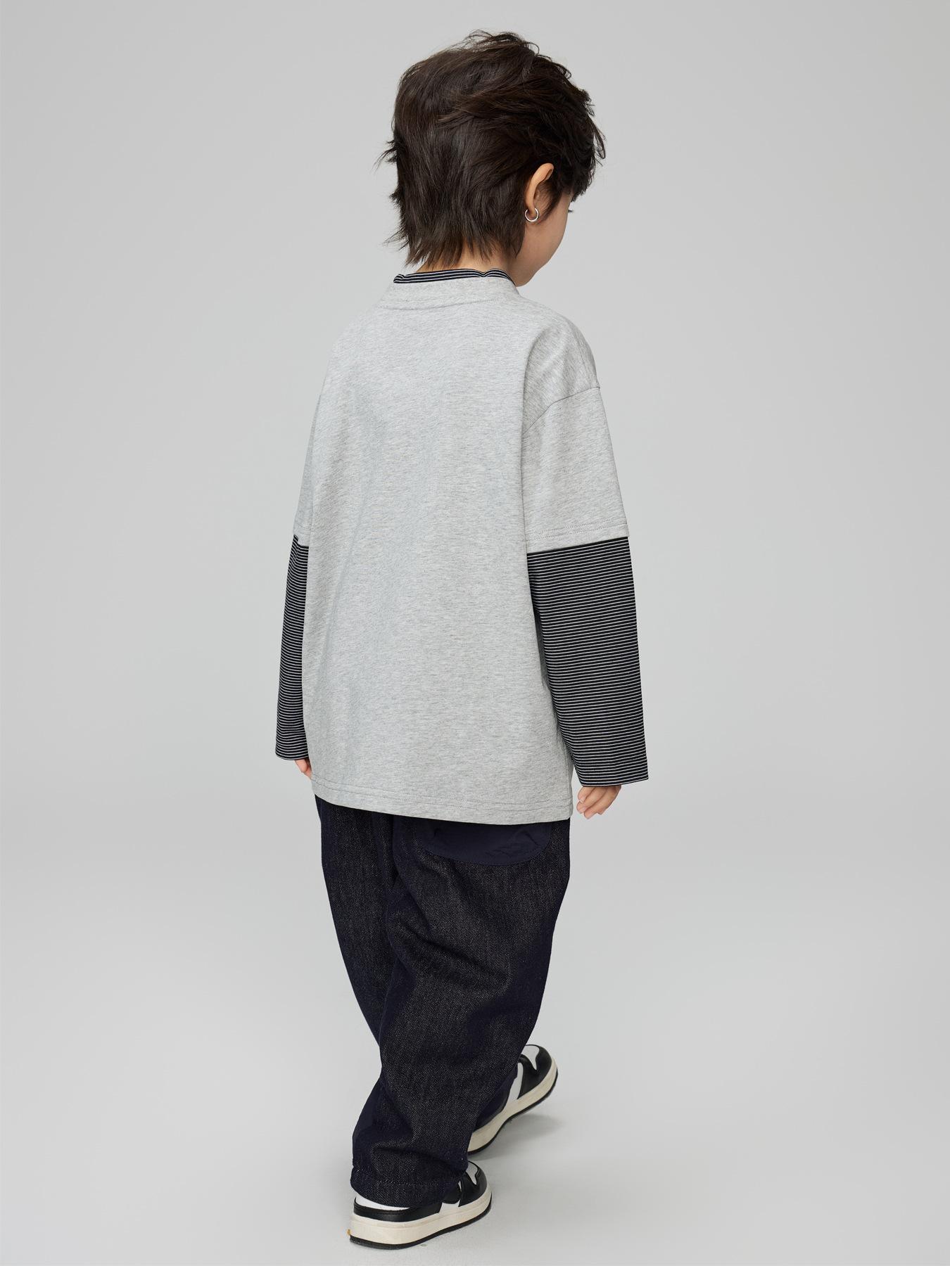 A versão listrada de duas peças falsas, decoração personalizada com letras impressas, cheia de moda, efeito legal no corpo ~
