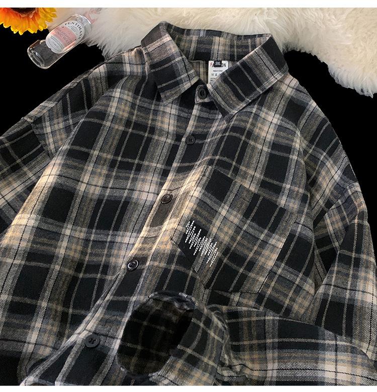 Compre Camisa xadrez americana masculina primavera e outono nova marca de moda all-match retro camisa de manga comprida high street casual jaqueta top no atacado no Joom.pro