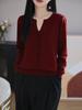Compre 2025 Início da primavera Novo suéter de lã pura com decote em V Feminino Solto Elegante Suéter All-match Fino Base de malha Camisa Top no atacado no Joom.pro