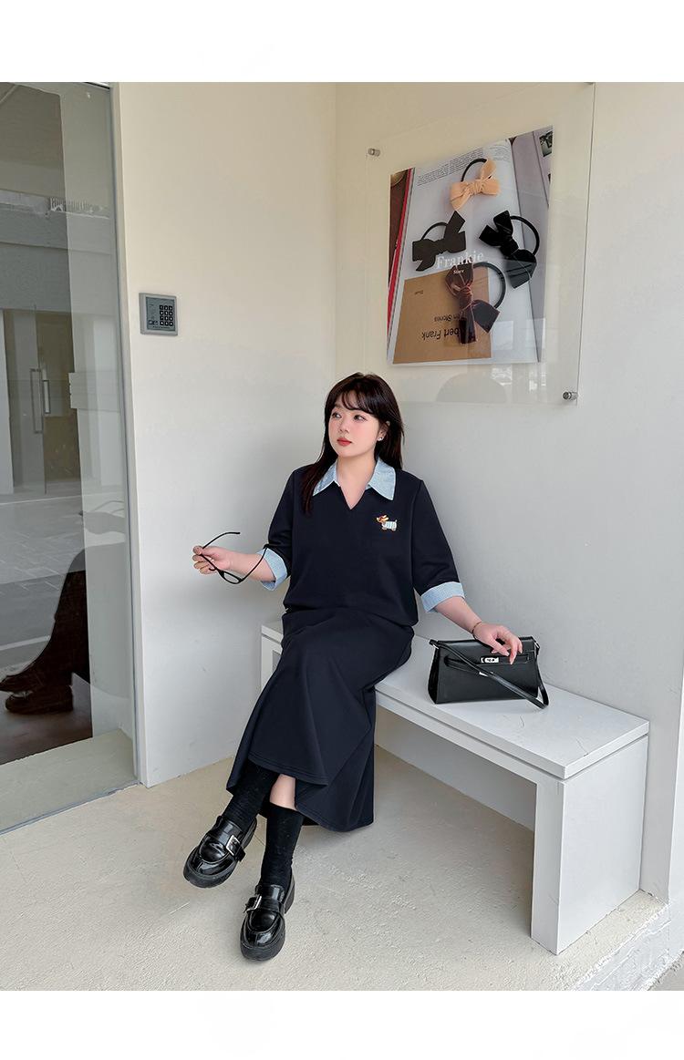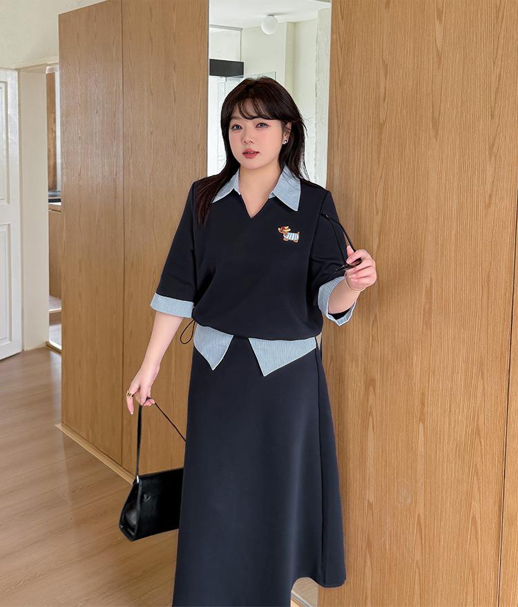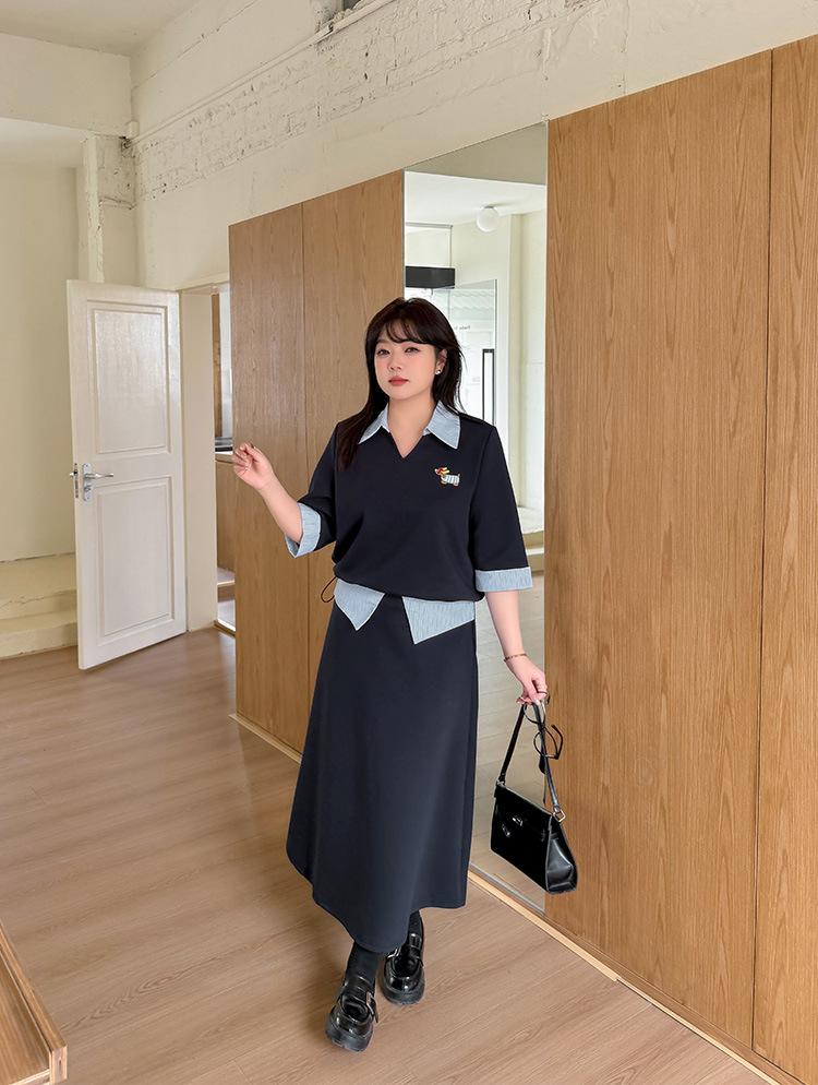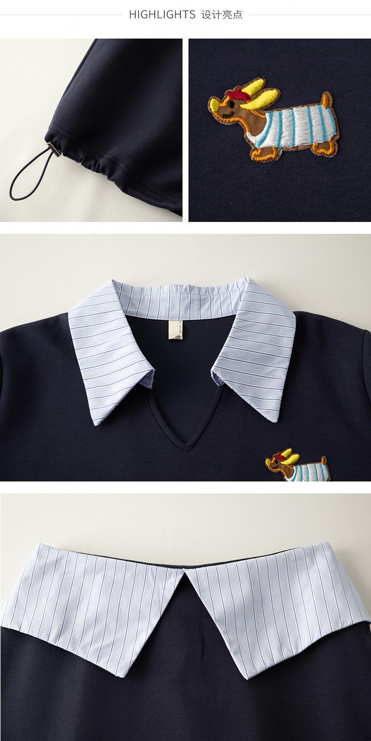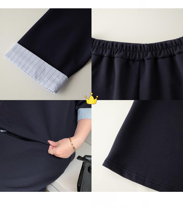 Dois desenhos de costura de cores contrastantes são feitos no decote, punhos e bainha.