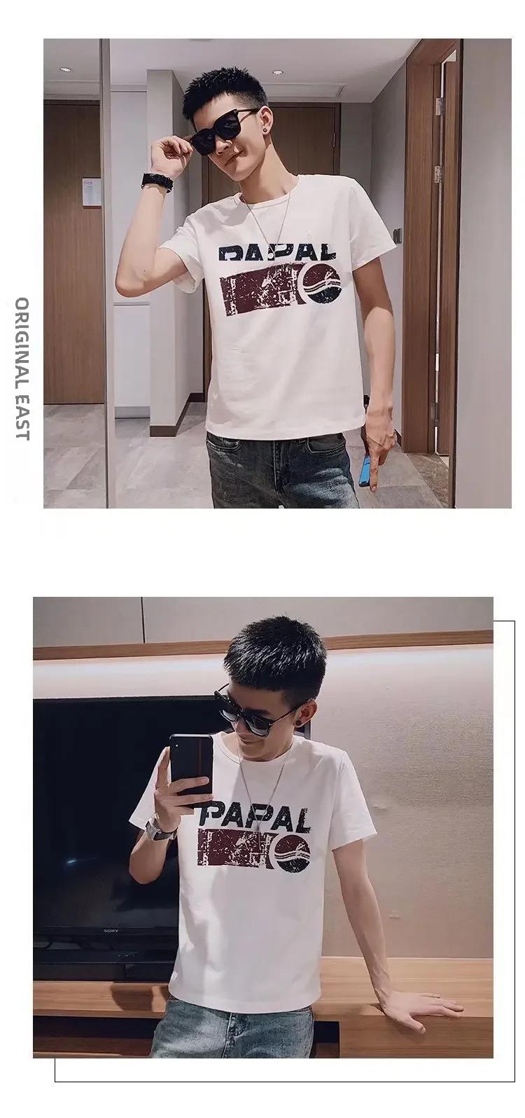 Nova camiseta de manga curta masculina de verão, estilo coreano, estampada na moda, meia manga, estilo Hong Kong, slim fit, casual, camiseta de marca da moda