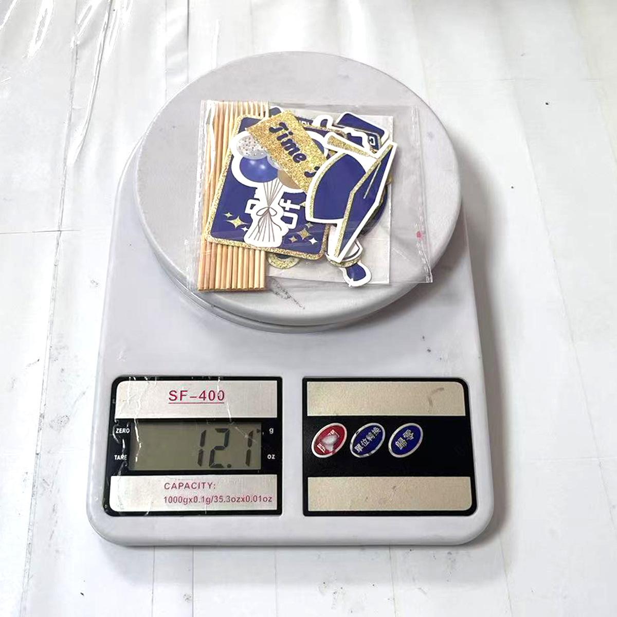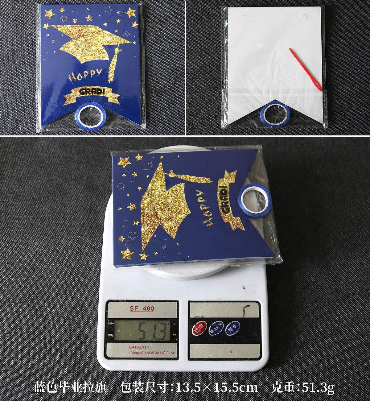 Embalagem: saco OPPBandeira de formatura 13*16cm, espiral de formatura de 6 unidades 18*18,5cm, pequena placa 10*11,5cm, flor de formatura 17*13,5cm,Balão de formatura 14,5*12,5cm,