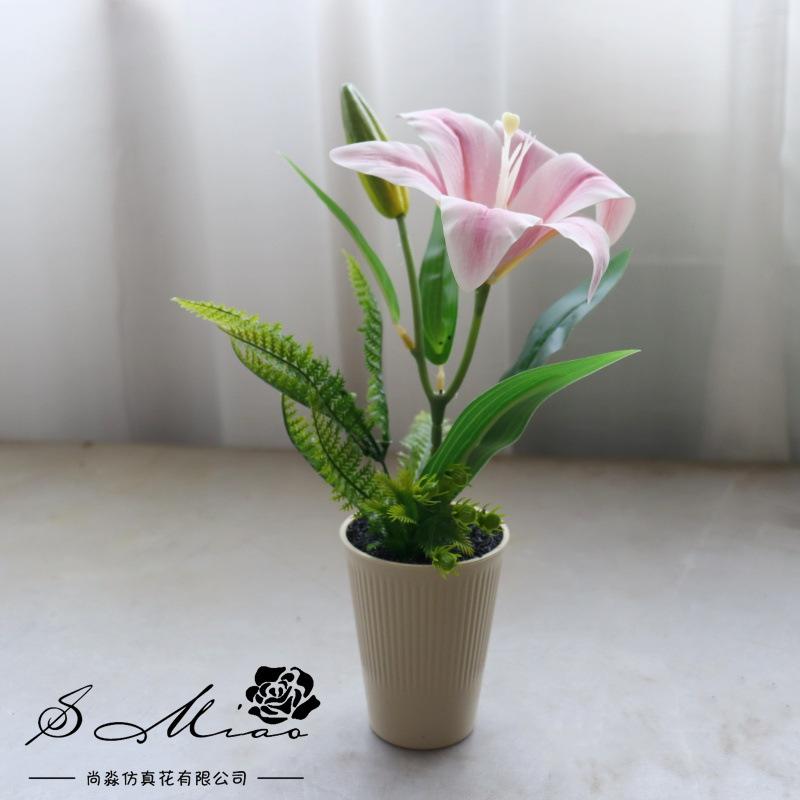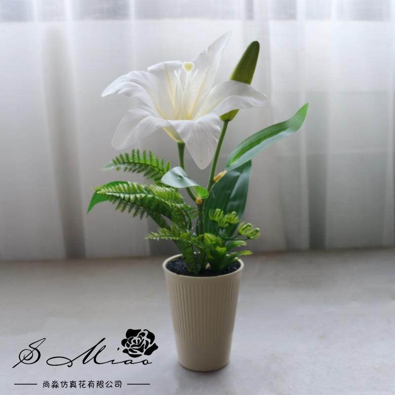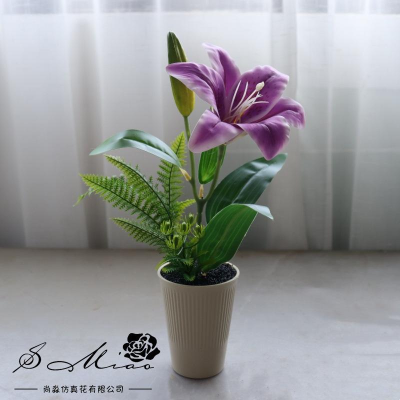 Pequeno bonsai de lírio de duas cabeças (vaso de plástico)