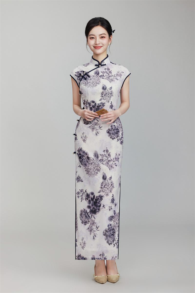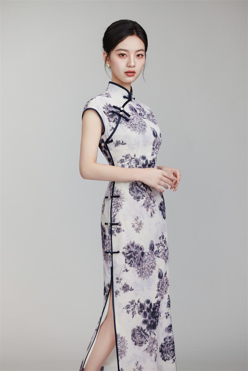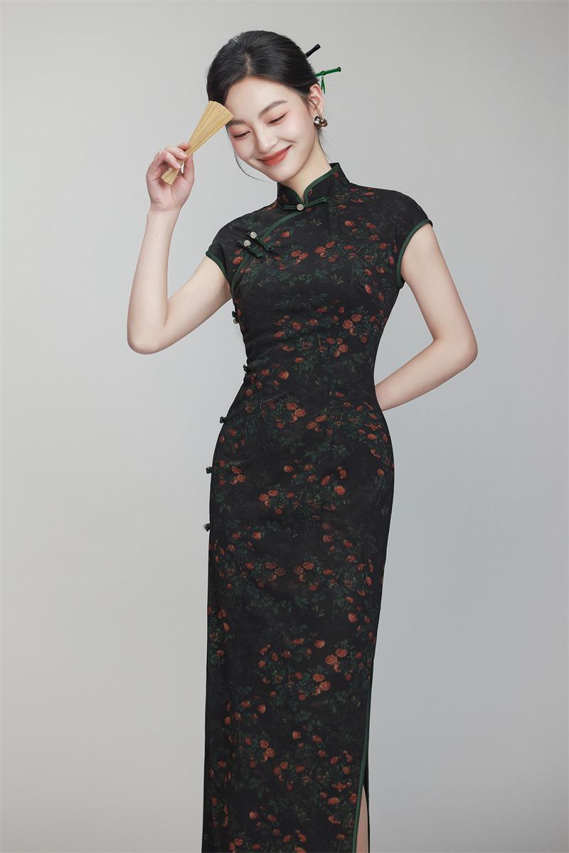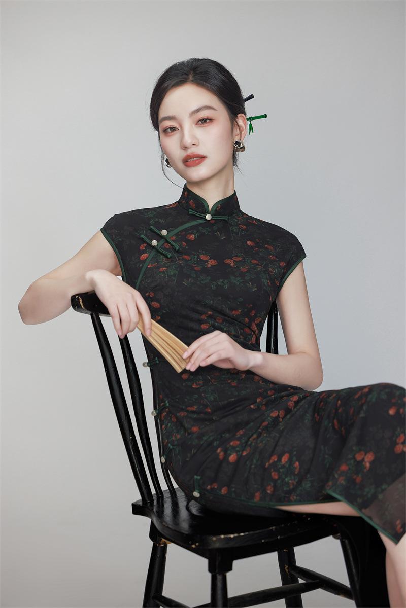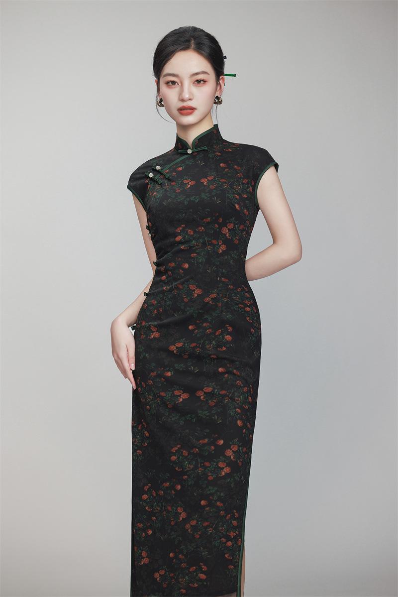 Características:Novo cheongsam, tecido, textura macia, bom caimento, não encolhe, não desbota, não faz bolinhas, leve elasticidade, mais característico da nação chinesa, bem-vindo(a) à compra,