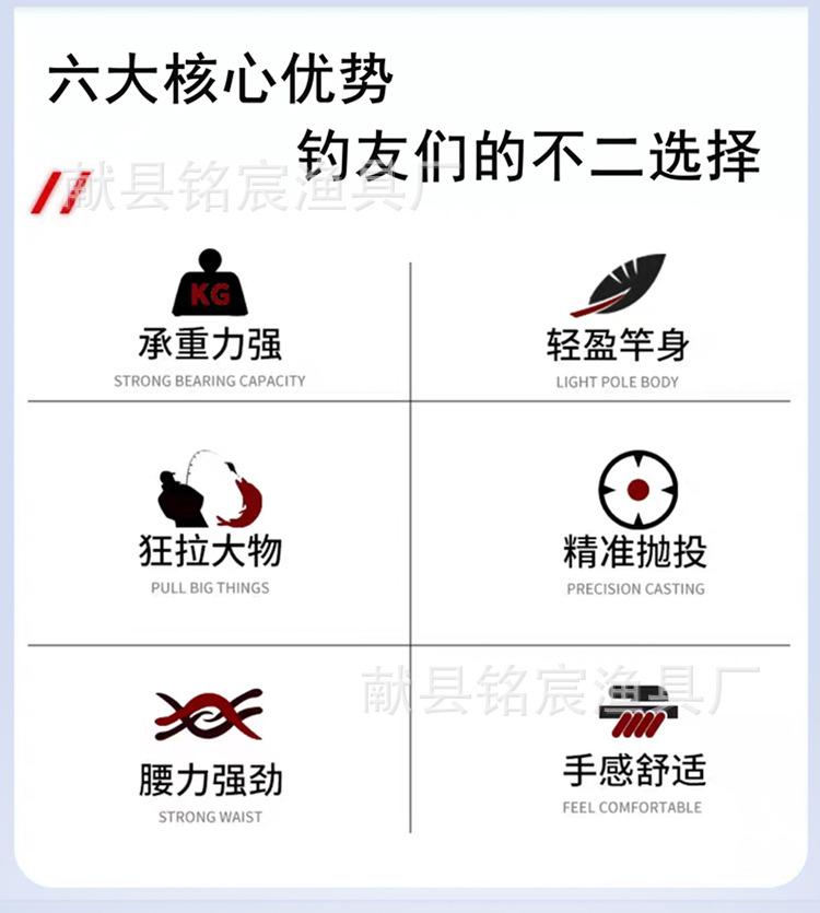 A Xianxian Mingchen Fishing Tackle Factory é uma empresa especializada na produção e processamento de varas de mar de cabo de arma de duas cores, mestres de pesca, varas de mar de quatro camadas, canções de pesca, varas de mar, varas de jangada, varas rochosas, varas de isca sólida, varas de mão, varas de fundição de longa distância, varas rochosas longas e outros produtos. Possui um sistema de gestão de qualidade completo e científico. A integridade e a qualidade do produto da Xianxian Mingchen Fishing Tackle Factory são reconhecidas pela indústria. Amigos de todas as esferas da vida são bem-vindos para visitar, orientar e negociar negócios.