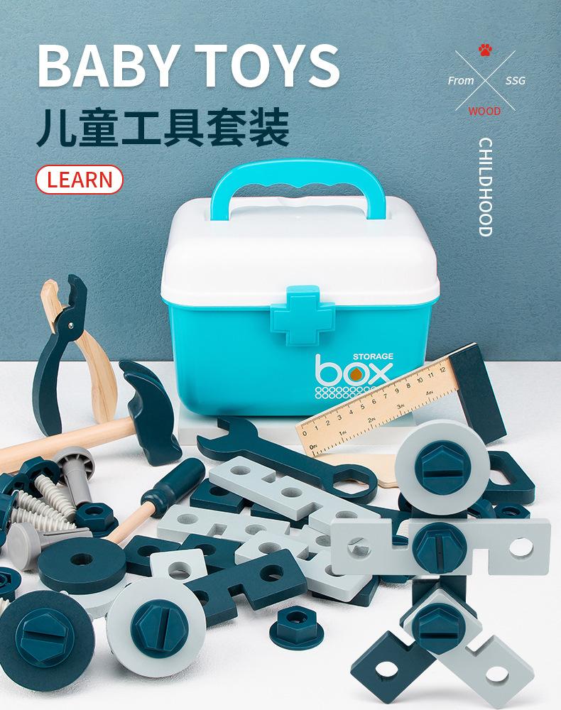 Nome do produto: Conjunto de ferramentas para crianças Embalagem do produto: caixa colorida, caixa de plástico