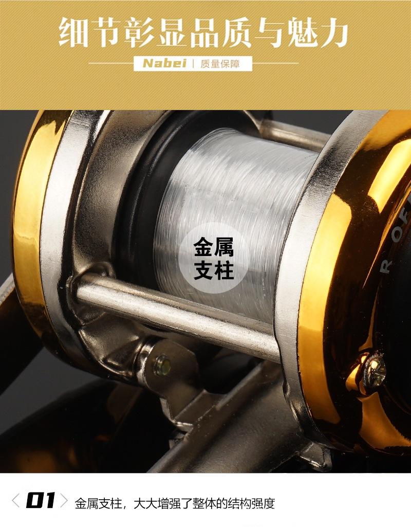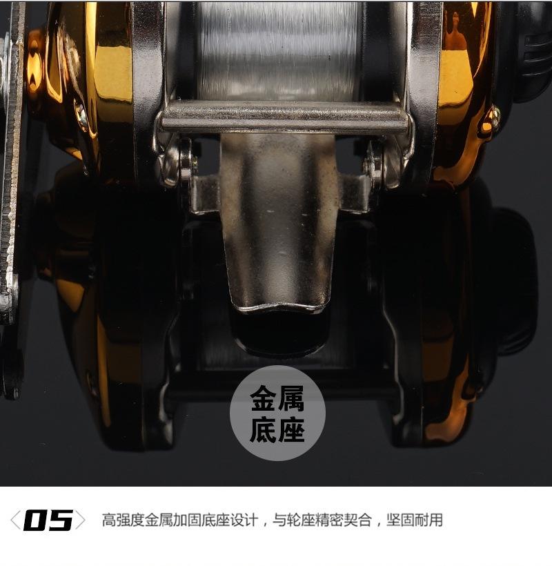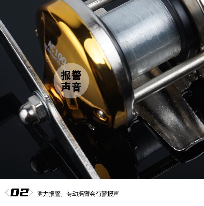 Com um novo design funcional, o interruptor de alternância intercambiável esquerda-direita fornece aos consumidores grandes necessidades de compra: L é para uso com a mão esquerda, R é para uso com a mão direita, OFF é o estado de liberação e CLICK é um dispositivo de alarme de tique-taque. A força de descarga da correia permite que os pescadores experimentem a diversão da pesca quando estão pescando.