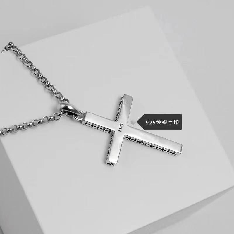 Pingente de cruz de prata para homens e mulheres personalidade retrô corrente de aço de titânio colar coreano super fashion presente para casal coreano