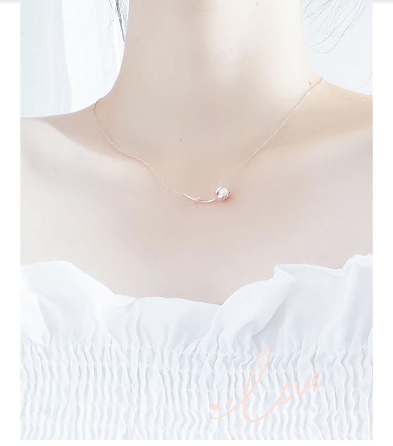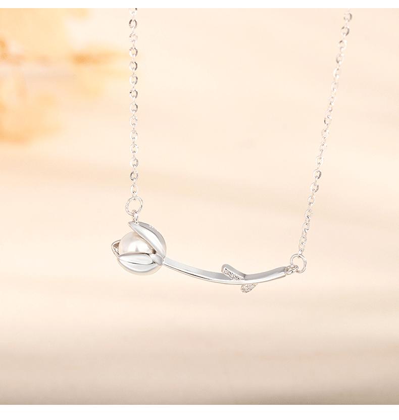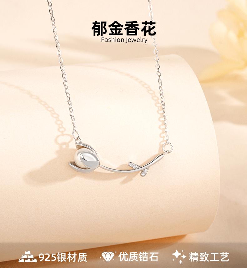 Compre Colar de tulipa de pérola de prata esterlina S925 para meninas, design de nicho, corrente de clavícula, estilo coreano, estilo INS, simples e moderno no atacado no Joom.pro