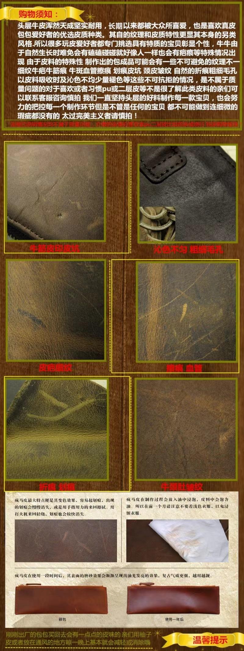 Material: Camada superior de couro bovino (artesanato em couro de cavalo louco)