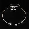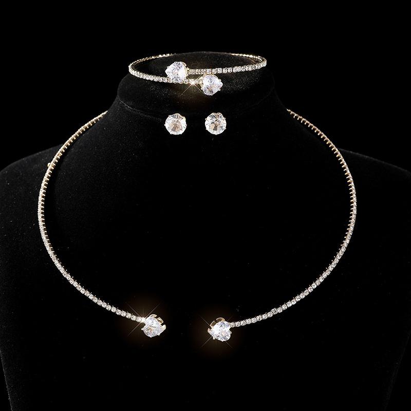 [Nombre del Bebé] Pulsera Aretes Collar de Pedrería Nupcial Europea y Americana Set de Tres Piezas Brillante Perla Zircón Collar Set de Collar Venta al por Mayor