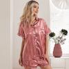 Pijamasfemininosconjuntosetim Estilo Europeu e Americano Pijamas de Exportação Listrado Colorido Terno de Seda Imitada Seda Gelo