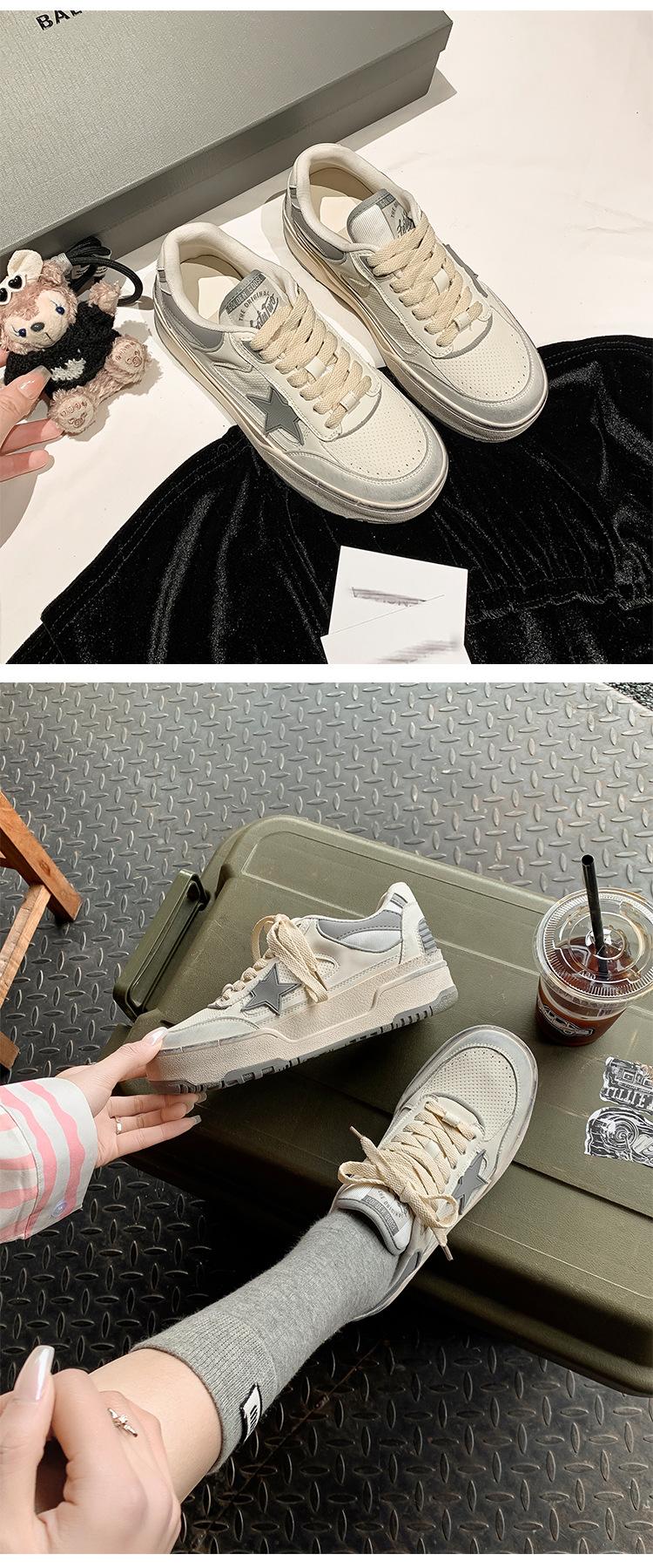 Compre Han Feng Vestido Pequenos Sapatos Sujos Fundo Grosso Couro De Vaca Malha Costura Sapatos Brancos 2025 Salto Médio Couro Sapatos Casuais no atacado no Joom.pro