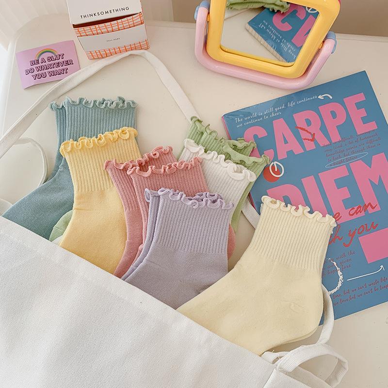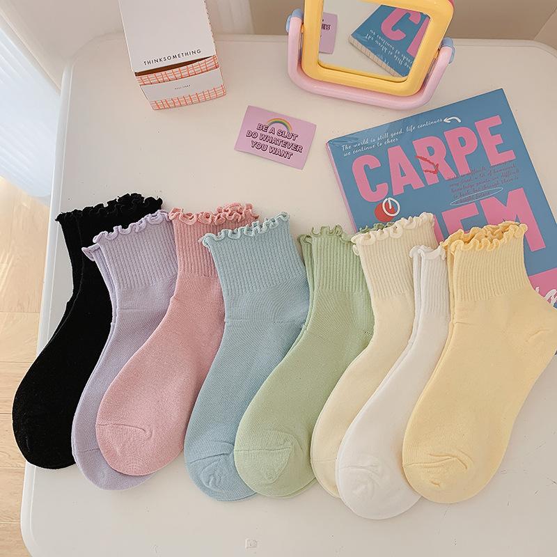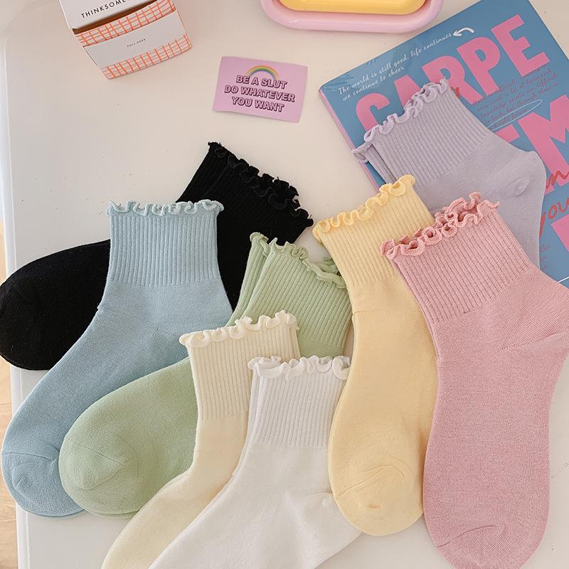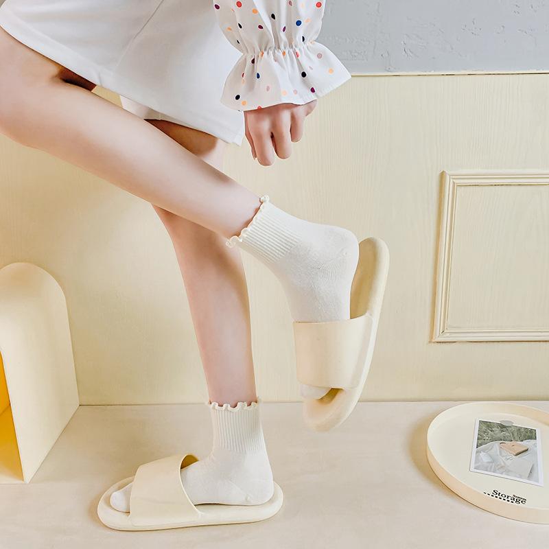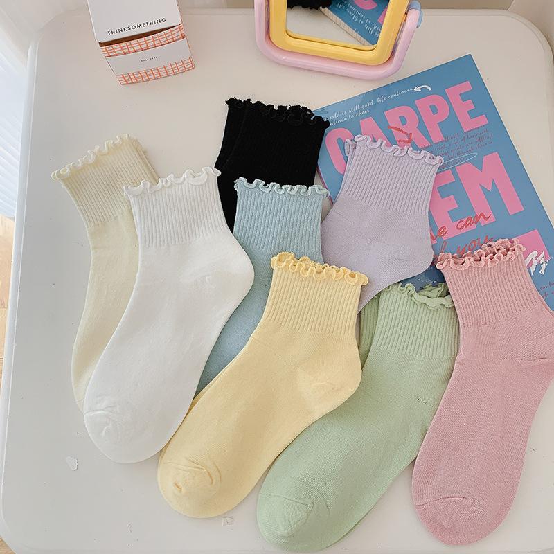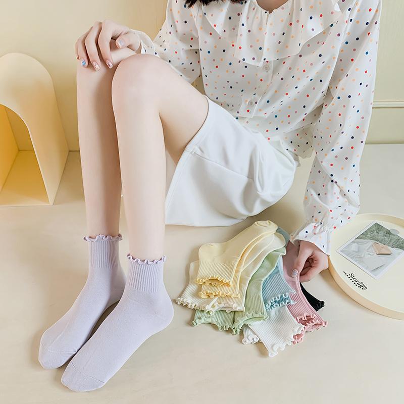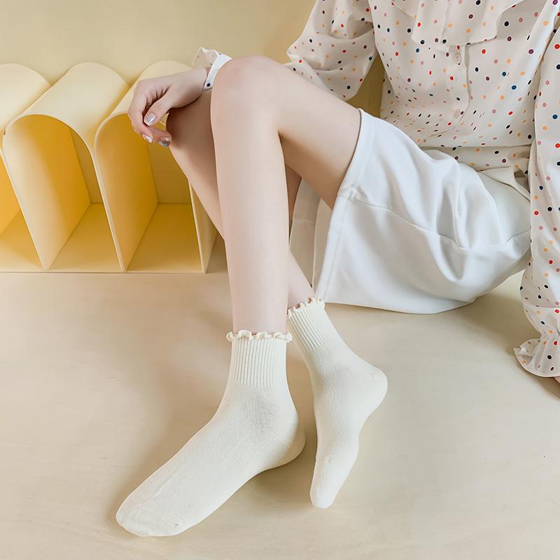 Meias de renda orelha de madeira cano curto feminino ins maré verão finas fofas japonês Morandi verão jk meias cano médio atacado