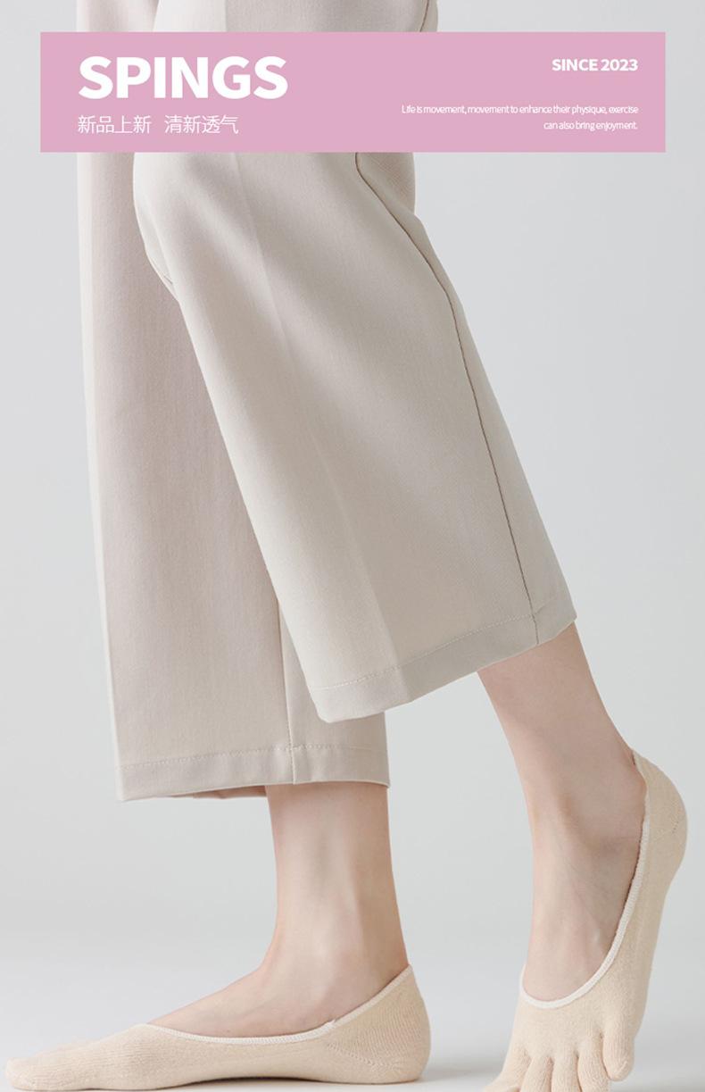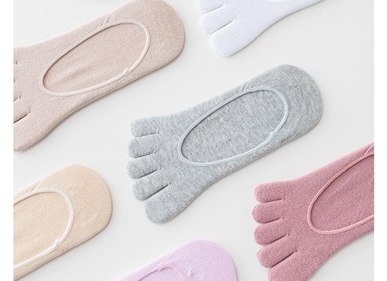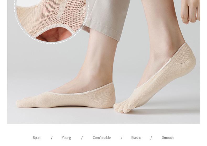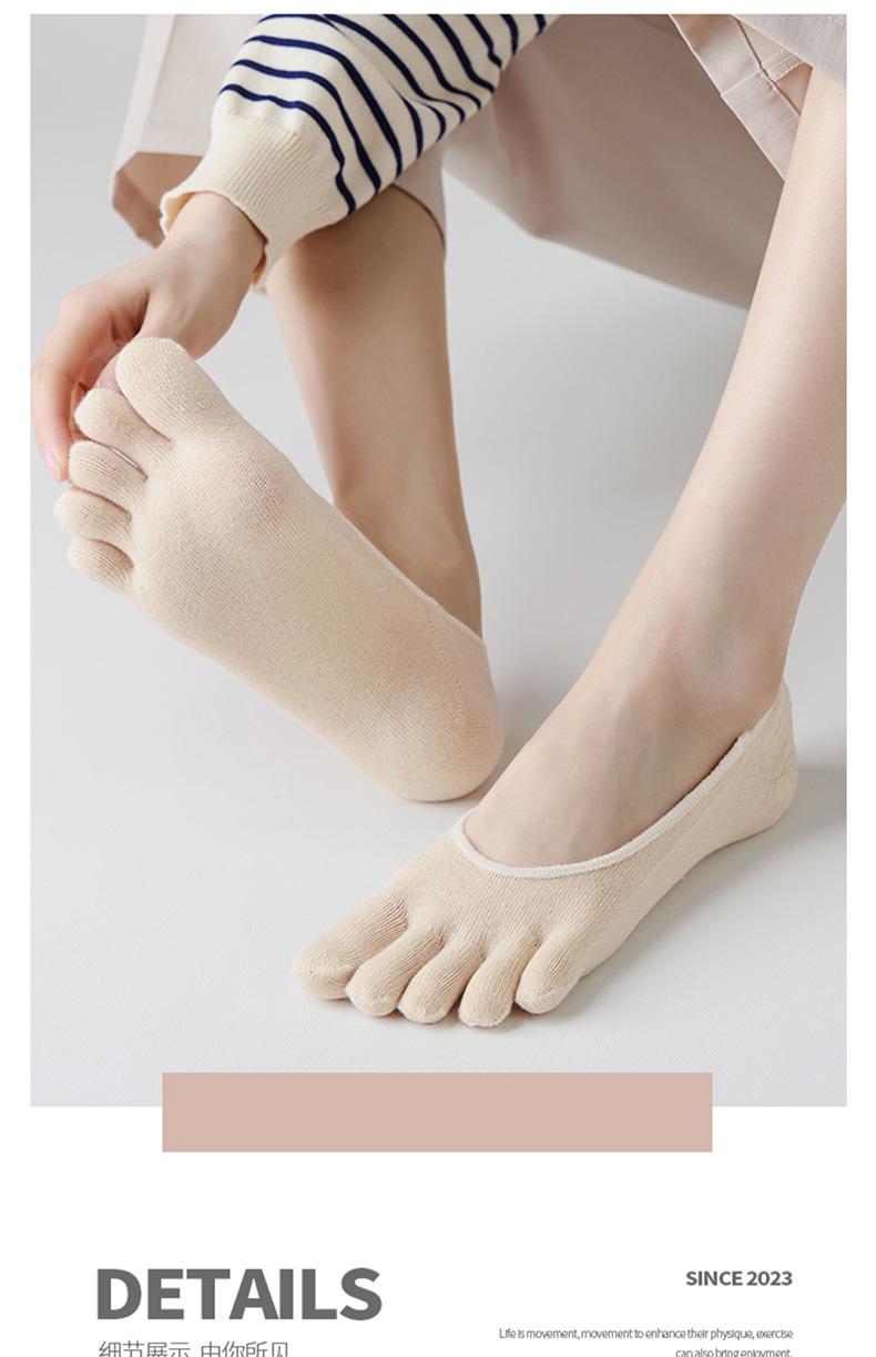 Meias de cinco dedos para mulheres no verão, meias finas, rasas, invisíveis, com dedos separados, absorventes de suor e antiderrapantes, meias femininas estilo barco, meias de algodão femininas de cor sólida, atacado