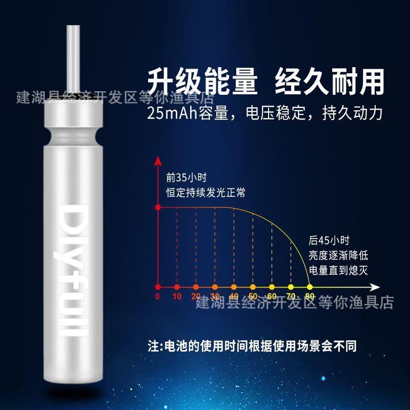 Lembrete amigável: Modelo de bateria CR425, usado principalmente em vários flutuadores luminosos eletrônicos para pesca em água doce e pesca marítima, a bateria tem 2,5 cm de comprimento, 4 mm de diâmetro e tem grande capacidade. (Não jogue fora a bateria depois que ela estiver fraca, deixe-a por um tempo e ela pode ser usada por várias horas e repita esse processo até que a energia acabe. É muito útil para pesca noturna. Certifique-se de retirar a bateria após a pesca para evitar vazamento)