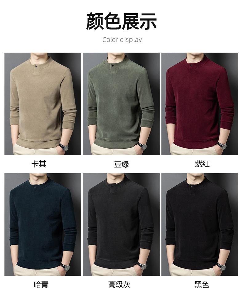 Botão colarinho forrado de lã dupla face veludo manga comprida suéter masculino outono e inverno quente versátil casual base camisa camiseta top