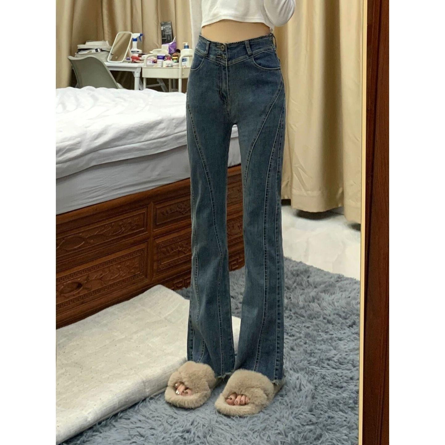 Compre Jeans feminino slim fit, cintura alta, elástico reto, estilo americano, design de garota gostosa, primavera e outono no atacado no Joom.pro