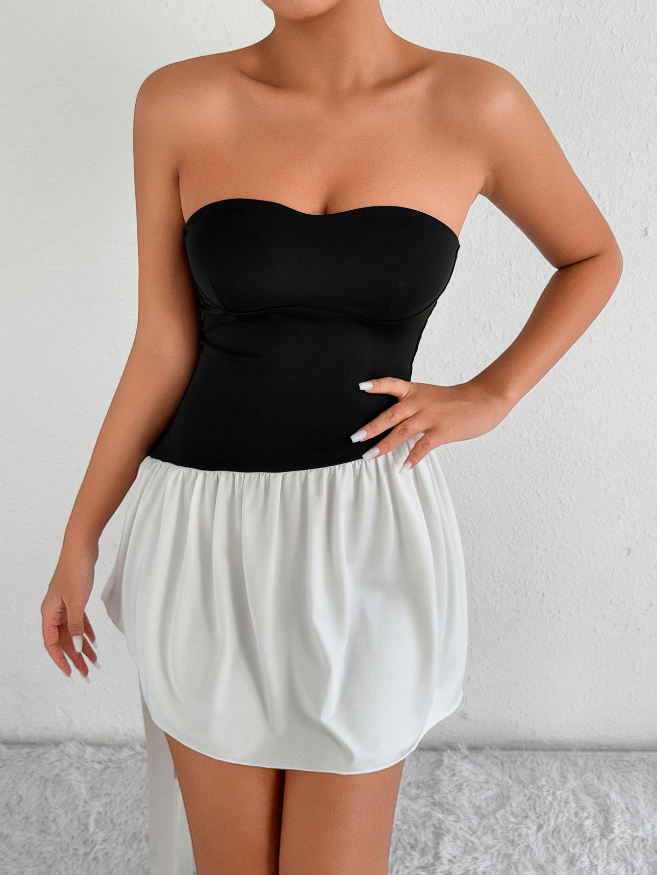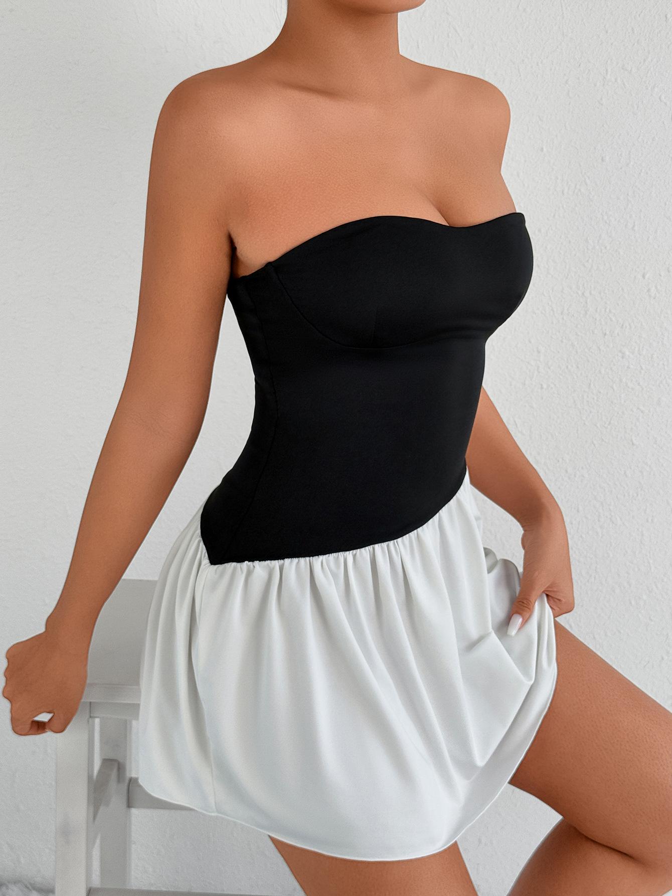 Top estilo tubo europeu e americano com decote de um ombro só e top curto ombro a ombro, fino, versátil e sexy;