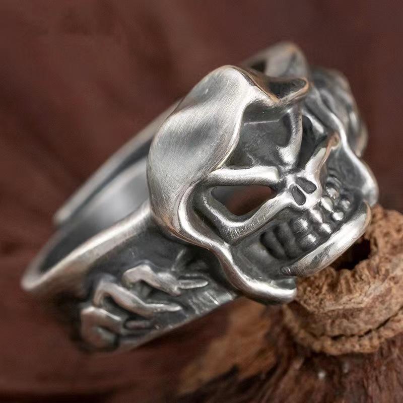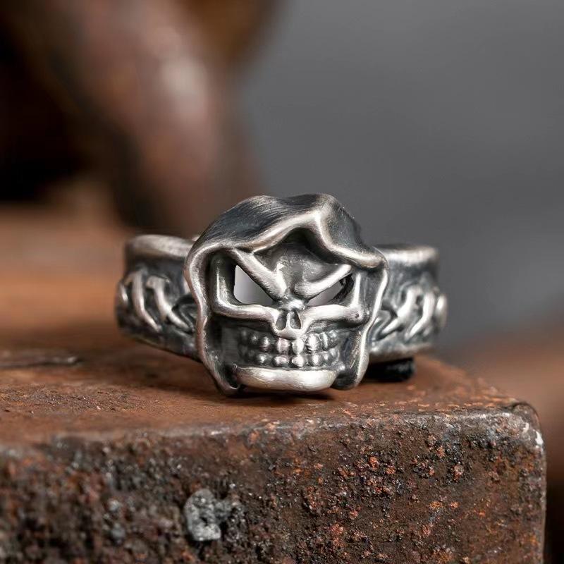 Anel da sorte com contas dzi de nove olhos de alta qualidade para homens, moderno, trançado, retrô, personalidade, aberto, para casais. ¥5,60 Compre agora | Anel Pixiu vintage de prata com rubi para homens Anel da sorte com moeda de cobre do Sutra do Coração anel masculino dominador vivo fabricante ¥1,32 Compre agora | Anel de morcego estilo metal frio retrô europeu e americano, anel de dedo indicador com design de nicho moderno para homens, joalheiro fabricante de anéis ¥0,88 Compre agora | Nova joia de moda transfronteiriça europeia e americana, apresentando um design de caveira de inspiração punk, corrente versátil de anel/pulseira de cinco dedos. ¥6,80 Compre agora | ||